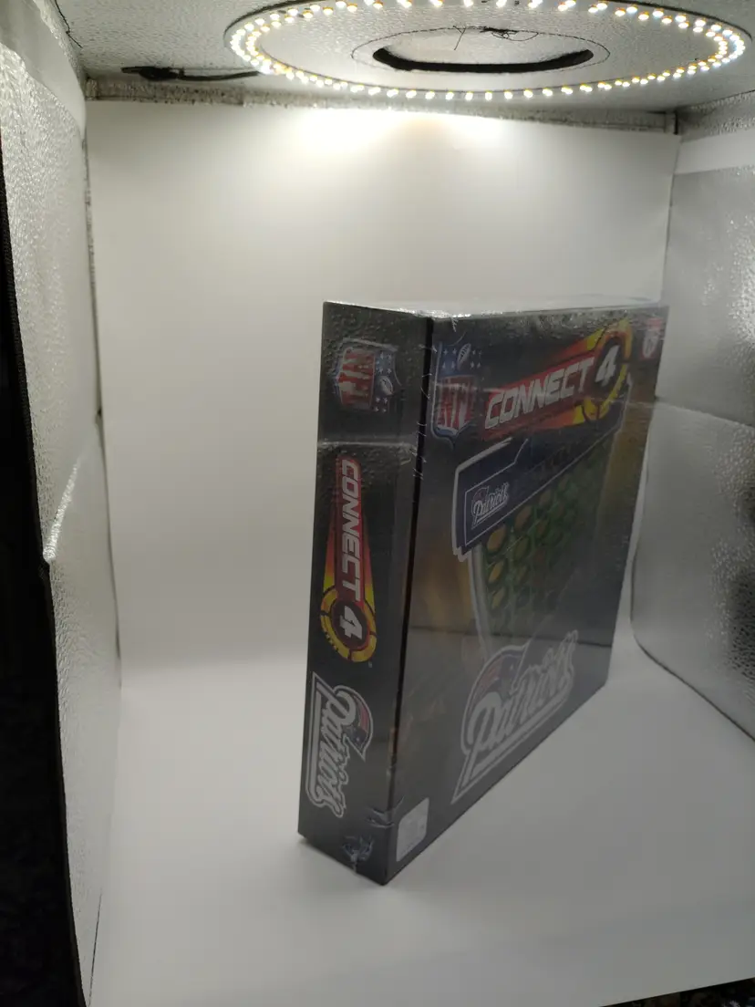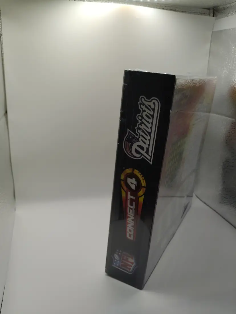 The product is a rare, sealed box of the Hasbro 2008 New England Patriots Connect 4 game. This strategy game is designed for 2 players and is themed around football, making it a perfect collectible for fans of the New England Patriots. With the game being sealed, it ensures that the contents are unopened and in mint condition, making it a valuable addition to any gaming collection.