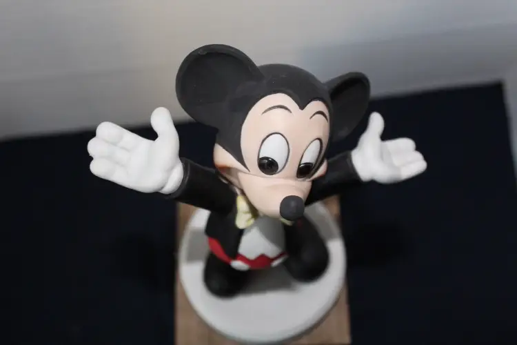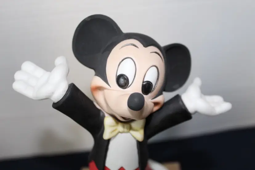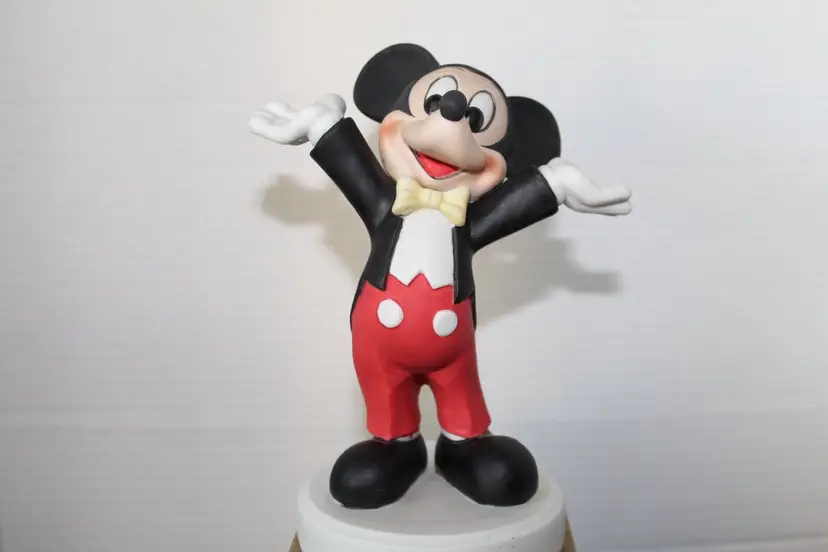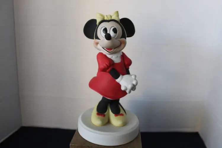 This vintage Disney figurine set features 7" ceramic figurines of Mickey and Minnie Mouse, representing the classic Disney characters. Made in Korea these rare figurines showcase the iconic characters in a timeless design. Perfect for Disney collectors or fans of Mickey and Minnie Mouse, this set captures the magic and nostalgia of the beloved Disney franchise. The figurines are a charming addition to any Disney memorabilia collection.