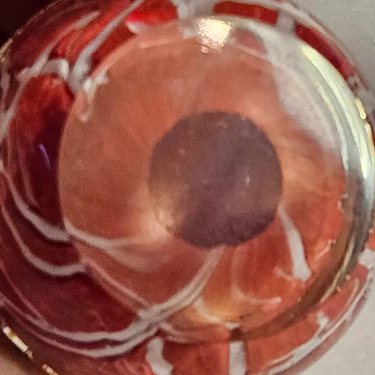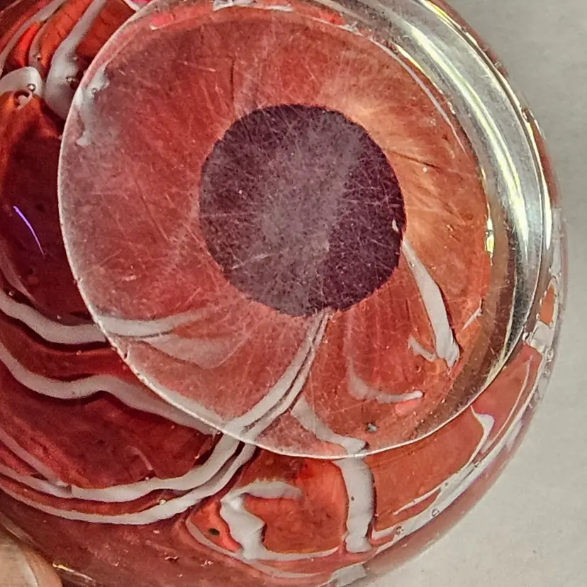 Unsigned piece. Beautiful clear, polished base. Approx 2.25" across Some bruises.