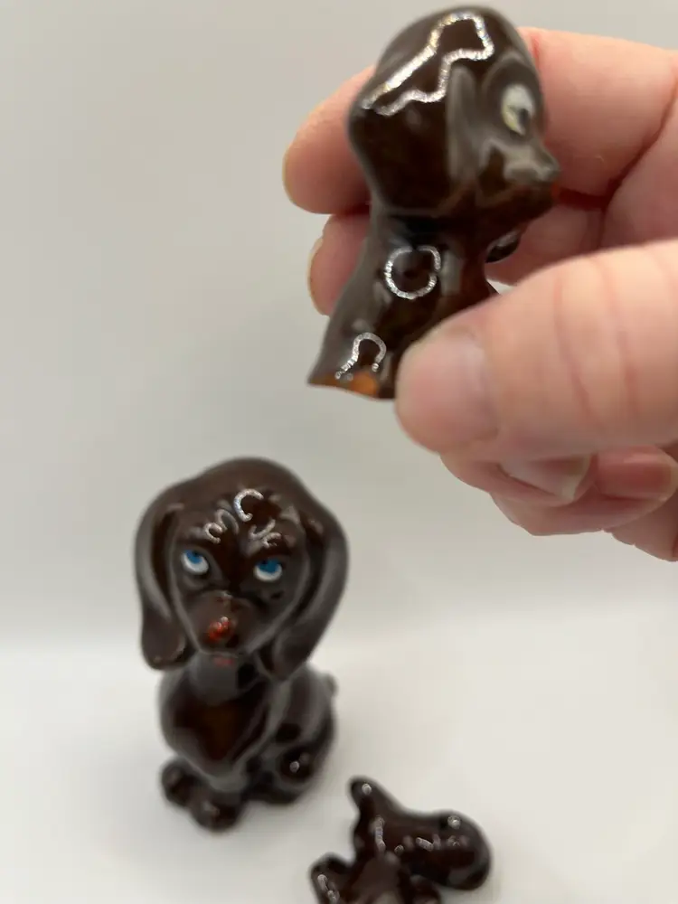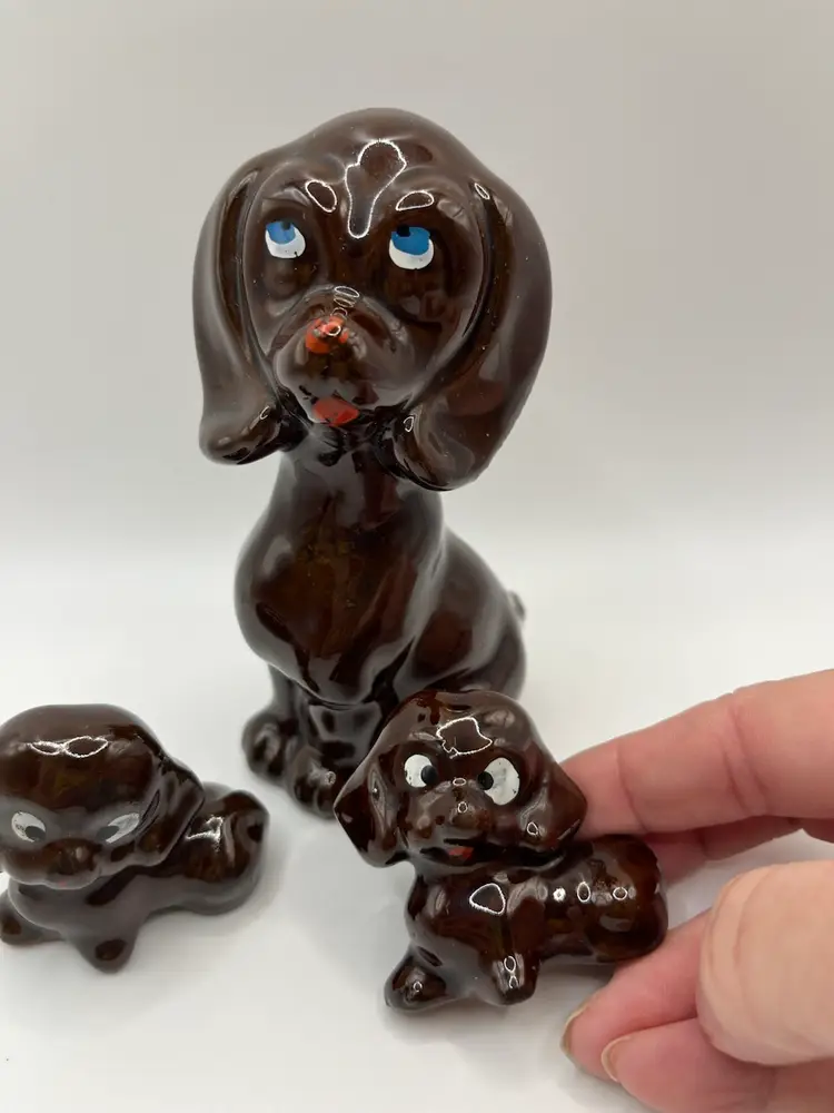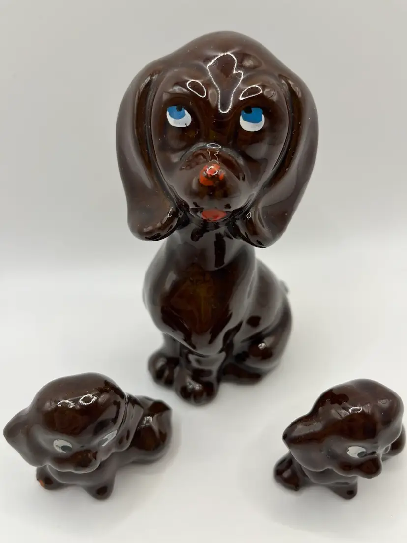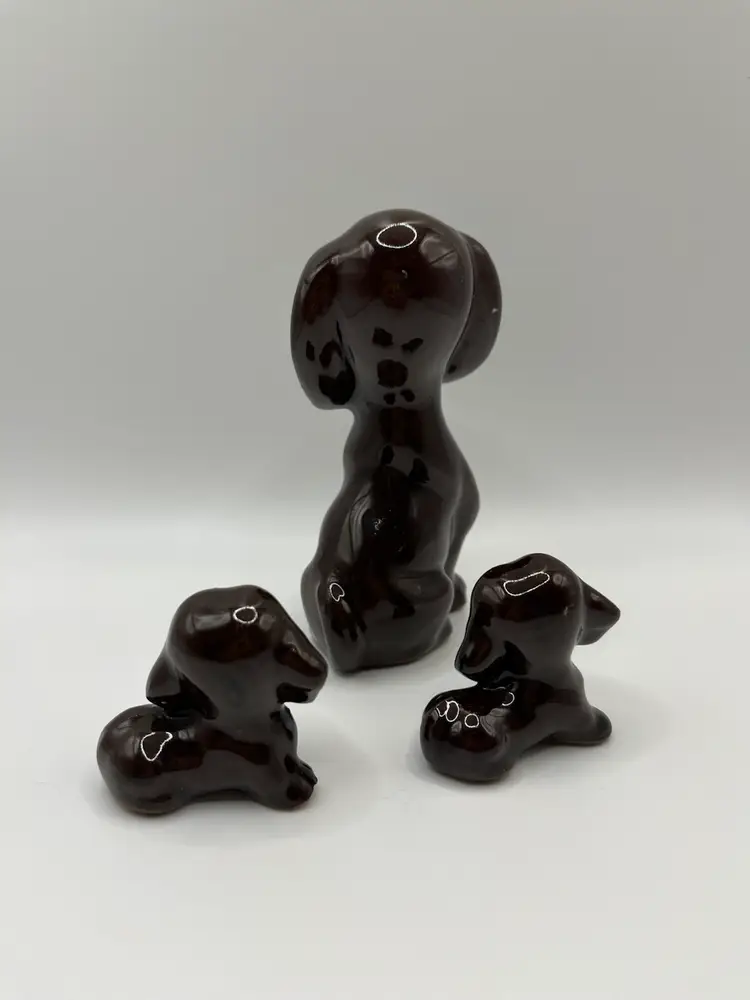 AS IS redware mom and 2 pups. One pup has small chip on toe please refer to pics.