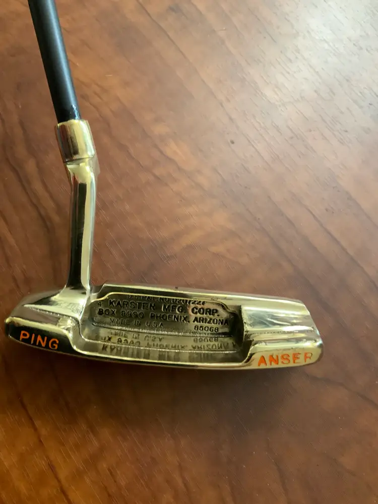Refurbished Ping Anser putter with new black steal shaft, custom color fill, new IOmic grip and head cover at 36”.