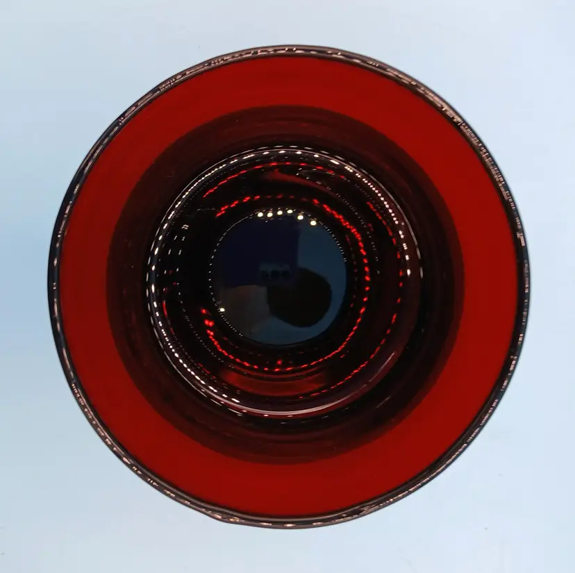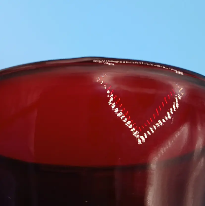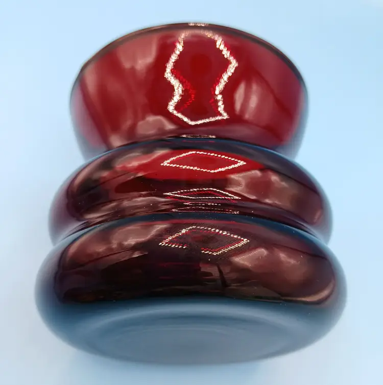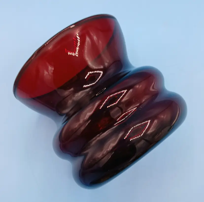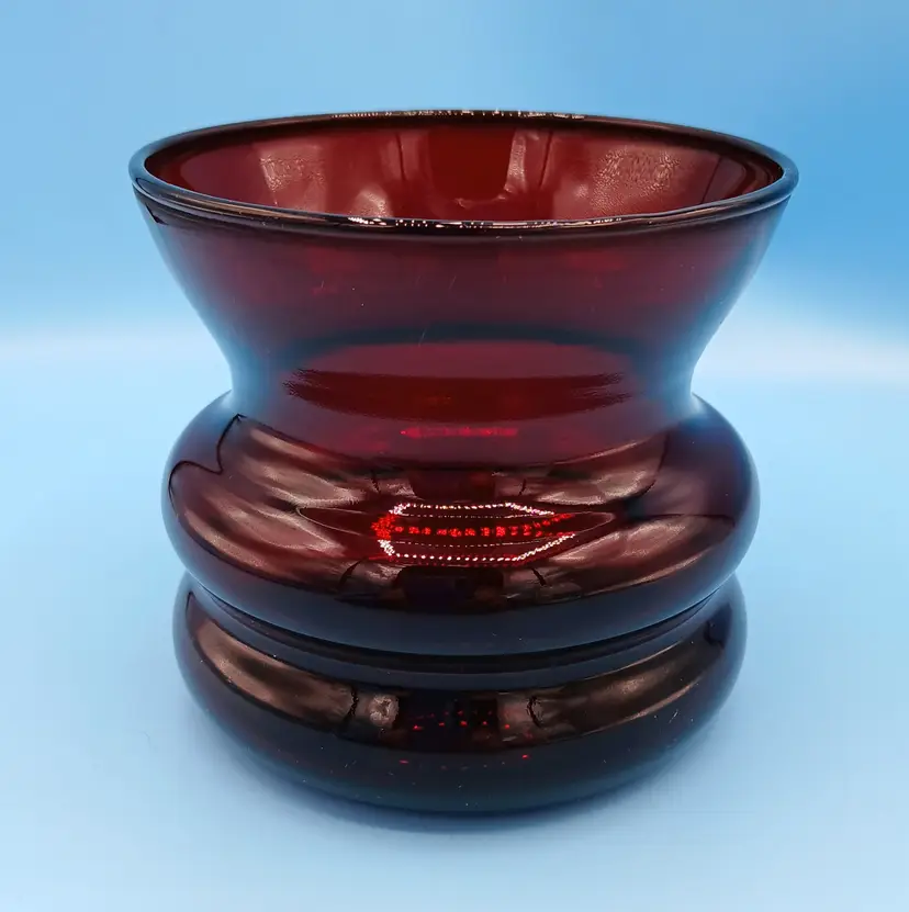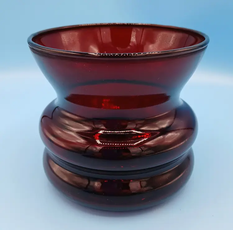 This vintage squat glass vase comes in a beautiful hue of red. No damage. 3.75"T x 4"D Thanks for looking!