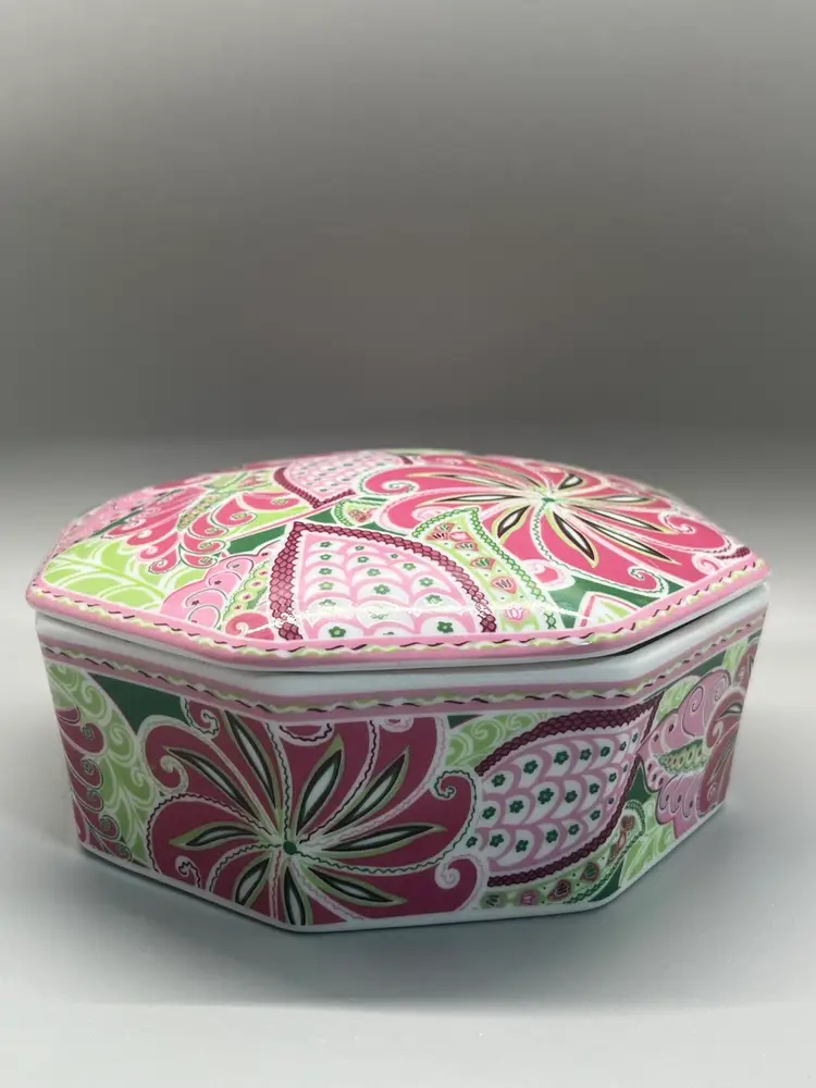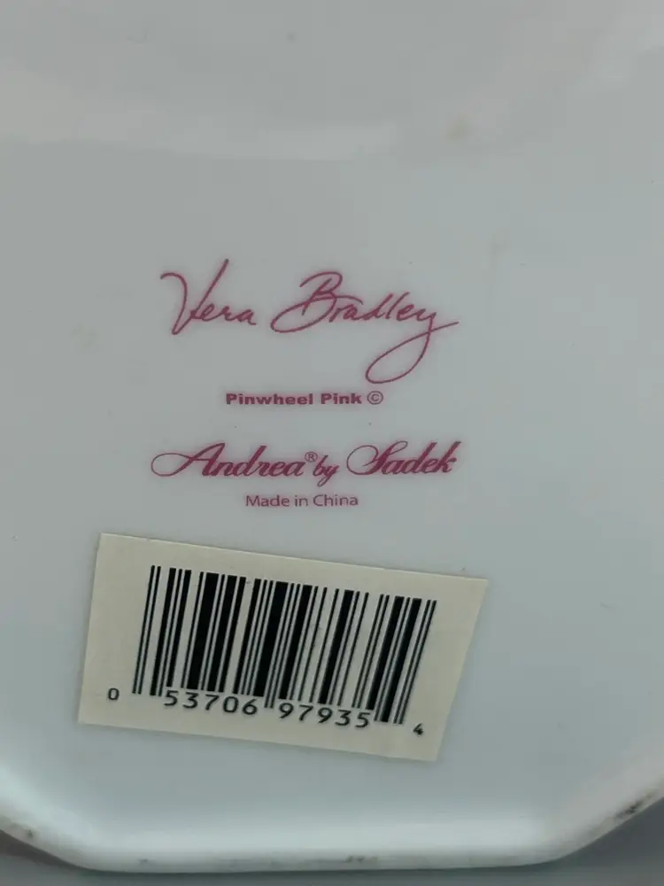 Beautiful collector piece combing the wonderful patterns and colors of Vera Bradley with the artistry of Andrea by Sadek. Beautiful inside and out.