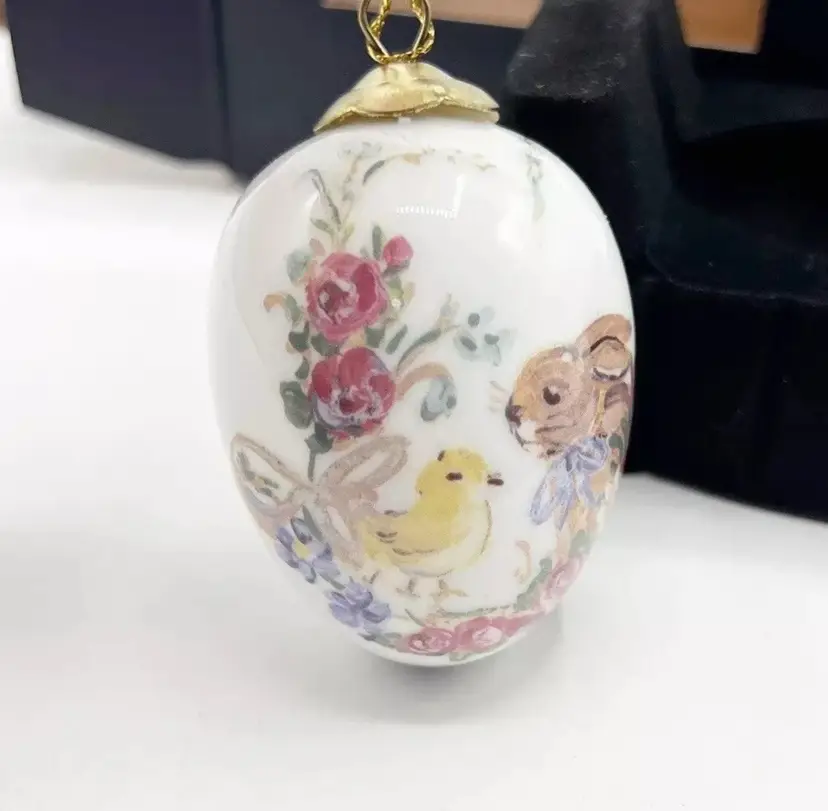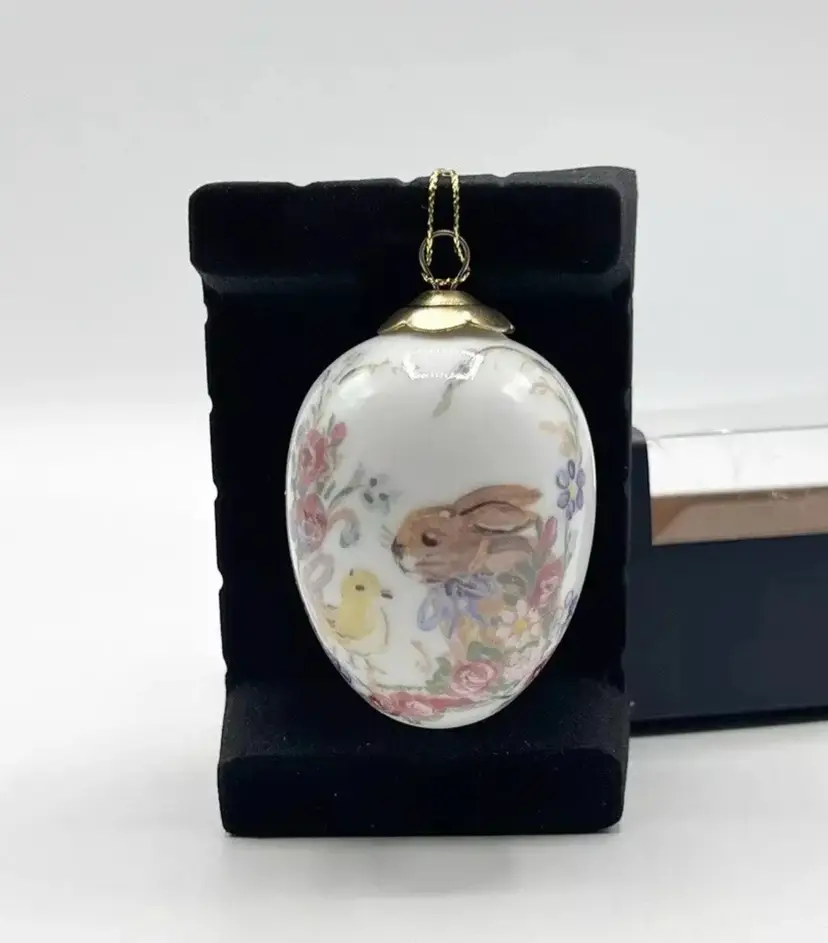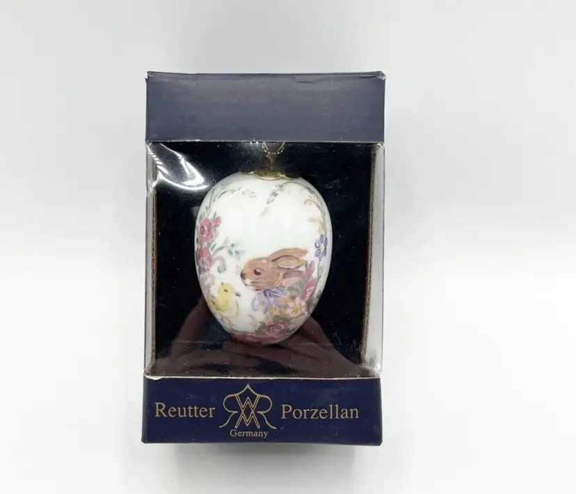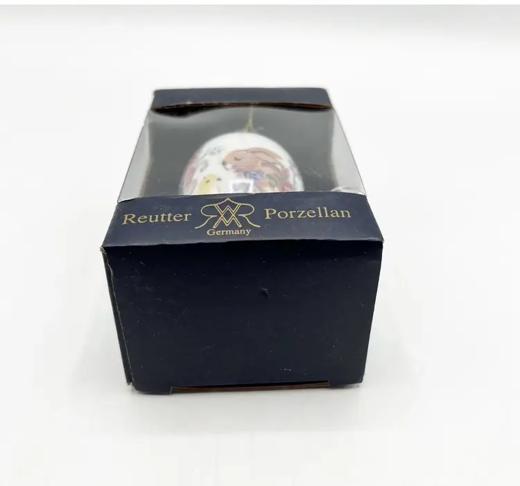 VINTAGE REUTTER Porzellan Rabbit Bunny Chick Porcelain Egg Ornament Easter 3.5"