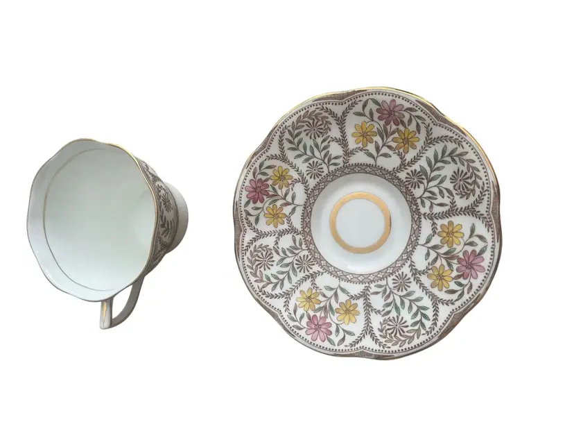 Beautiful gold trimmed cup & saucer Rosina made in England There is a tiny chip on the bottom edge of the saucer