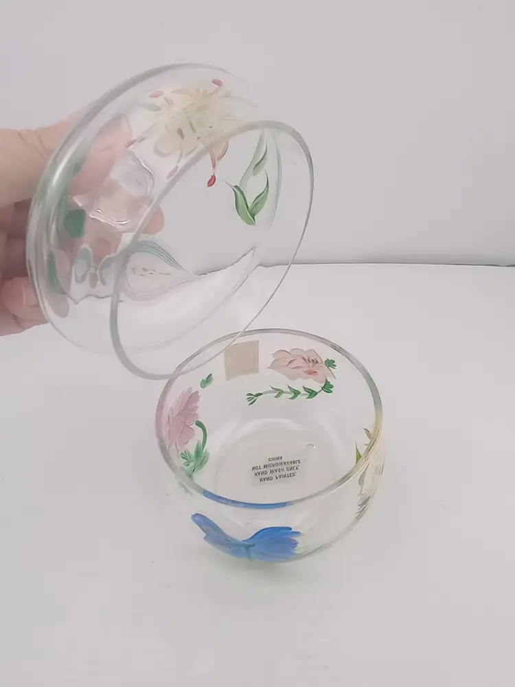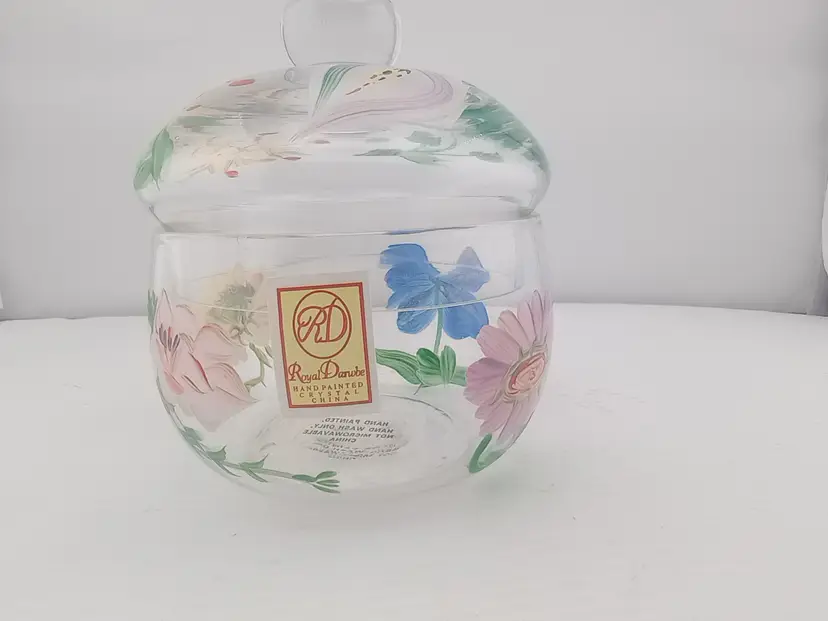 It's a pretty little lidded box/bowl from Royal Danube with handpainted flowers It's in excellent condition with no chips or cracks.