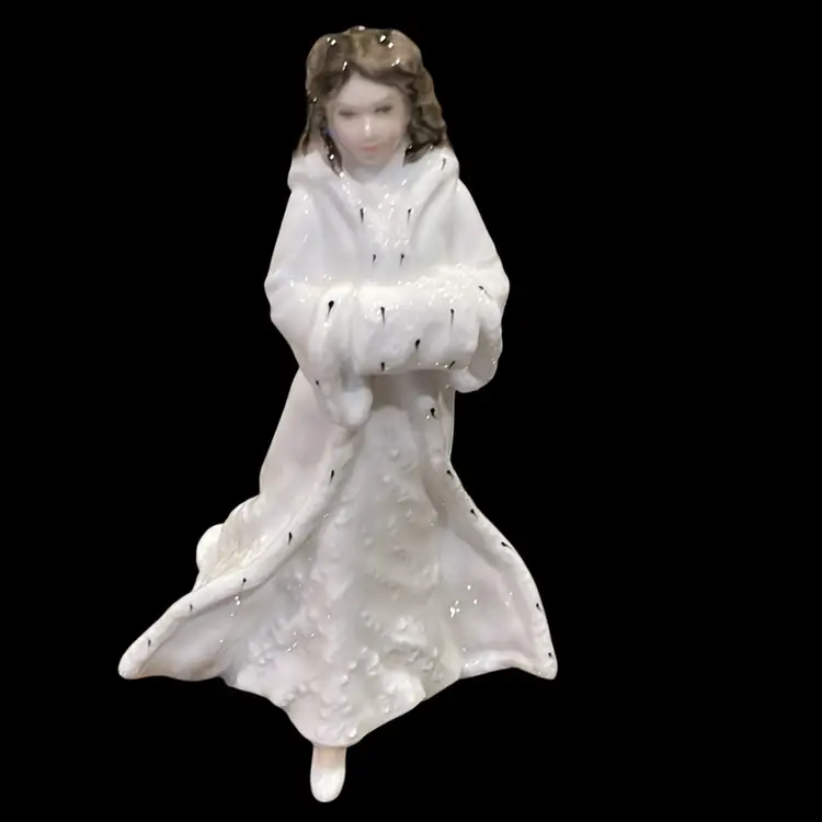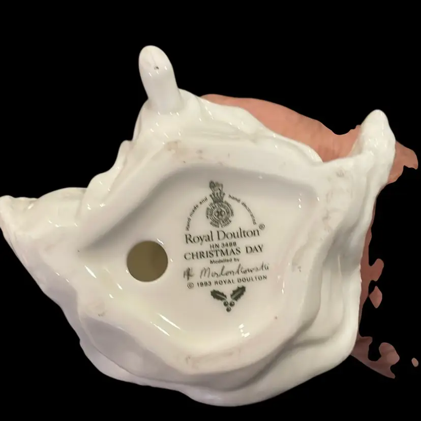 Royal Doulton Christmas Day Lady HN3488 porcelain figurine. It is a vintage collectible that measures approximately 6 inches tall. The figurine is hand-decorated.