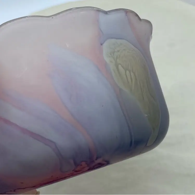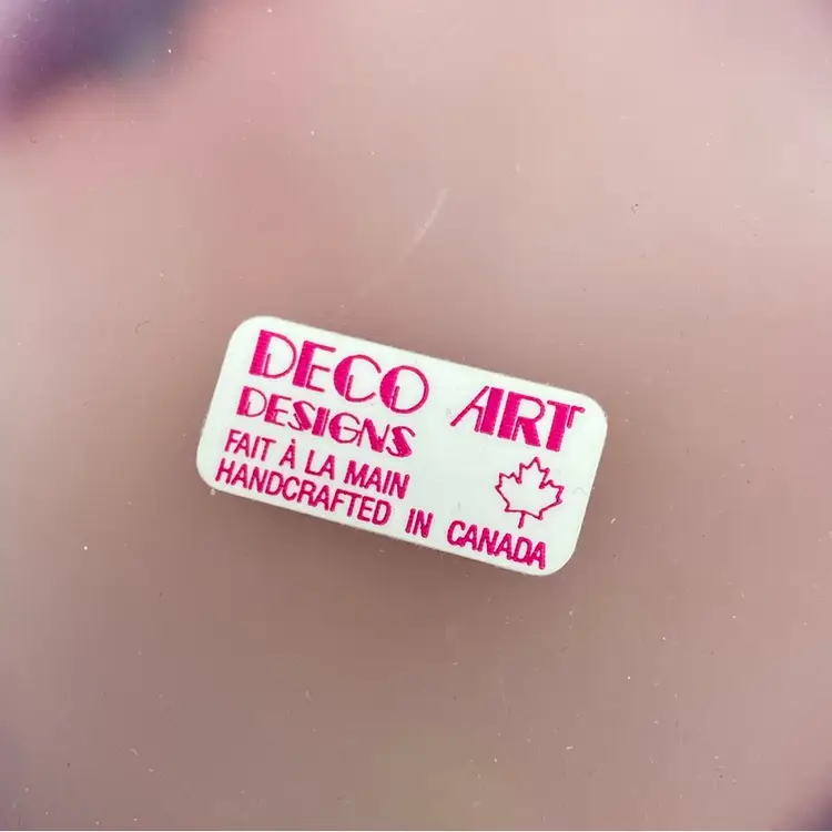 6 x 2.5 inch No chips or cracks Deco Art Designs is a Canadian company known for producing handcrafted glass art. Their pieces often feature vibrant colors and unique designs, reflecting contemporary artistic styles. The company emphasizes the use of traditional glass-blowing techniques combined with modern aesthetics.