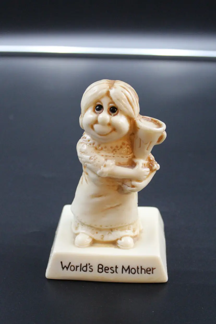 What Mom doesn't deserve a statue? This nostalgic piece is just what the doctor ordered! She stands around 5 inches tall and is about 3 1/2 x 2 1/2 inches at the base. Marked and numbered 733 on the back.