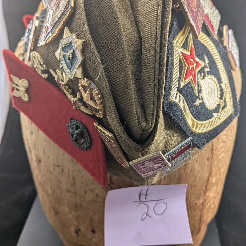 The Russian Garrison Hat with 43 Pins is a unique collectible item that showcases the history and significance of military regiments in Russia. Made in the Russian Federation, this hat serves as a symbol of honor and pride for those who have served in the military. The pins on the hat likely represent various units or accomplishments within the military, making it a special piece for collectors or enthusiasts of militaria. Items is USED. My items are purchased from estate sales and will have wear on them. I describe the items and I will bring your attention to any easily seen problems. I ask all buyers to This zoom in on the pictures and ask any questions before purchasing. The pictures are part of the description. I have items to the best of my ability but I am not an expert. All items are SOLD AS IS . Occasionally there may be minute defects (tiny cracks, worn glaze, etc) that cannot be easily detected. That is normal wear and tear on a used item. H-20