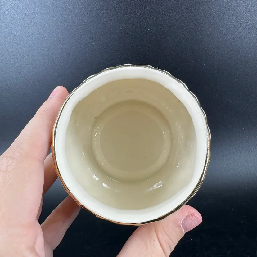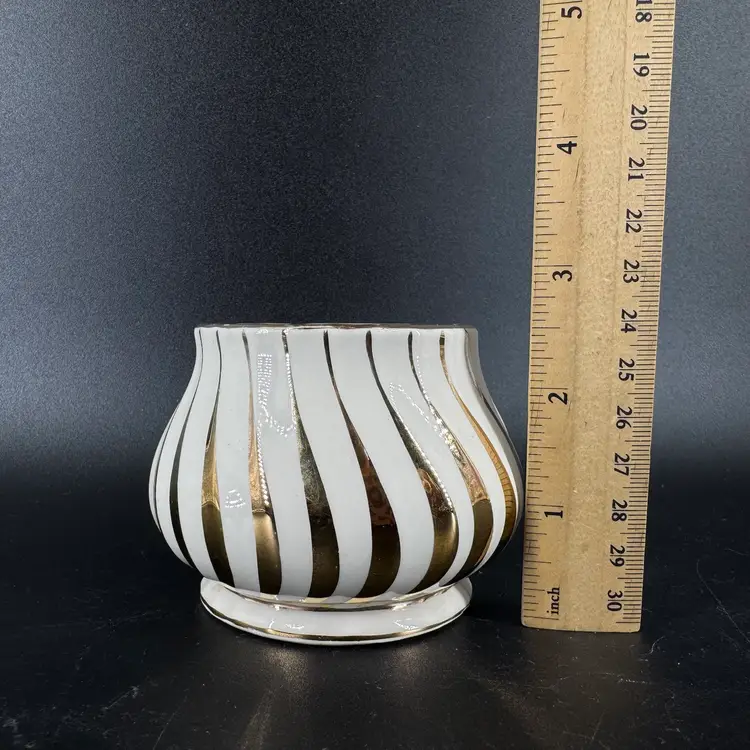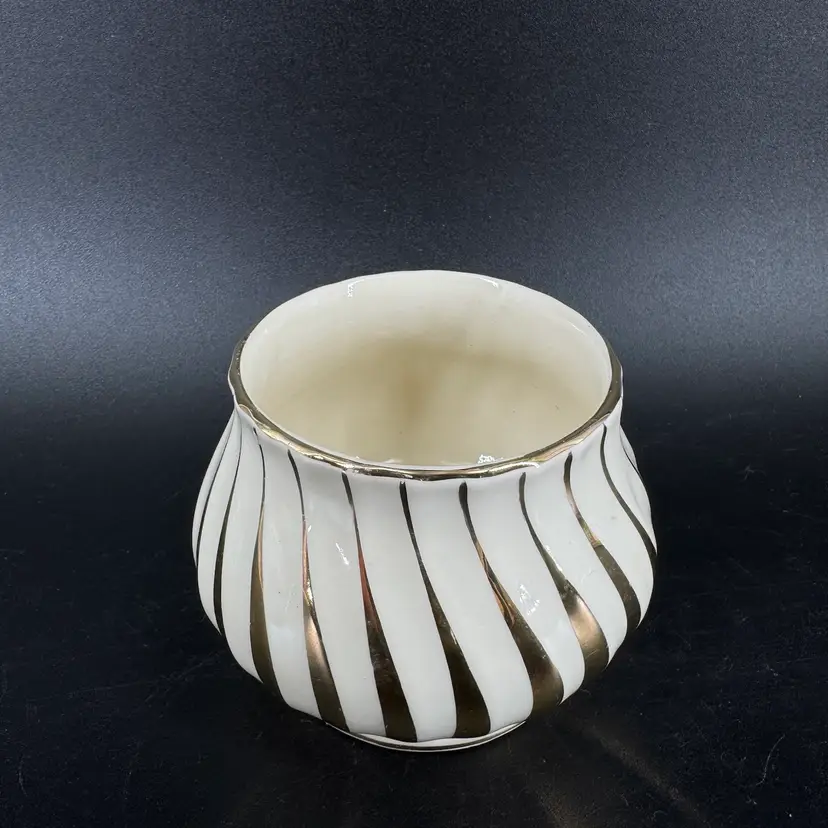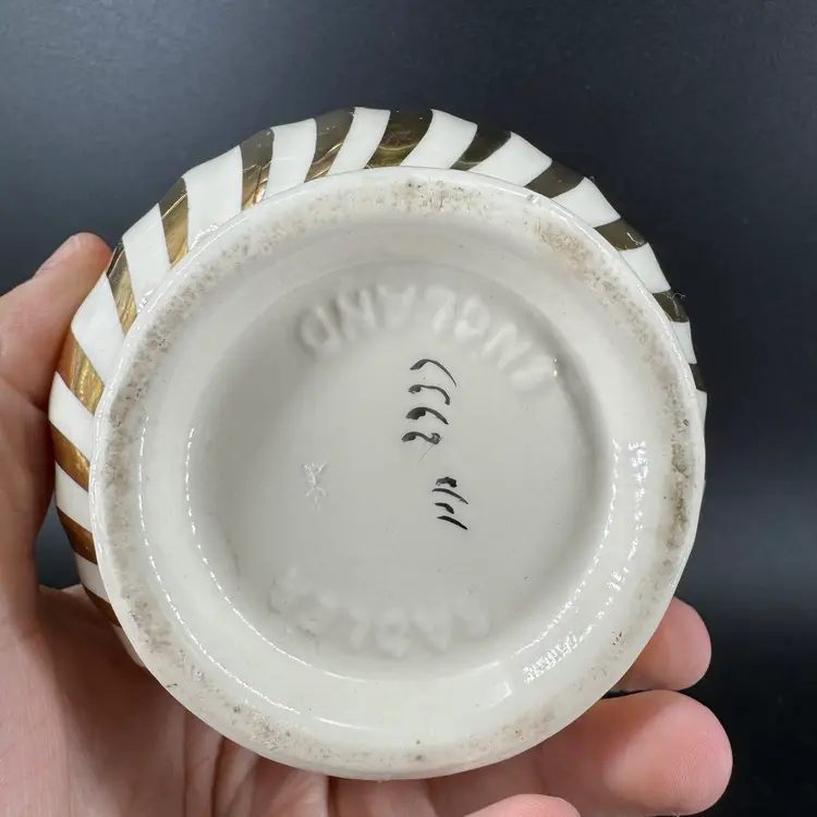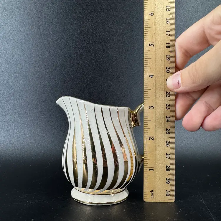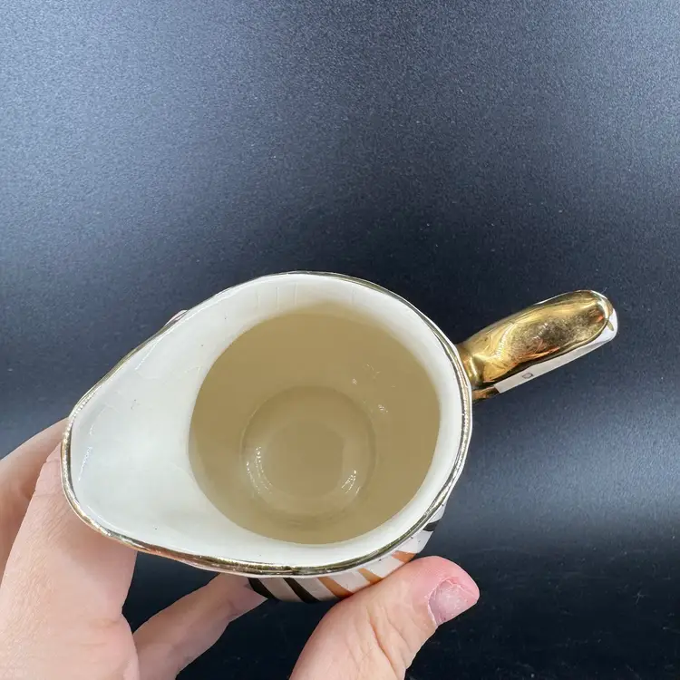 This Sadler England Swirl Porcelain Tea Coffee Pot Sugar & Creamer Gold Swirl Vintage has some crazing in the glaze, has a little chip on the bottom of the tea pot, and has some wear on the gold luster. All of it can be seen in the photos.