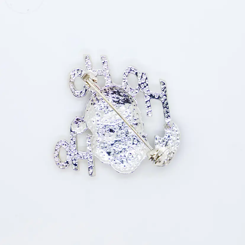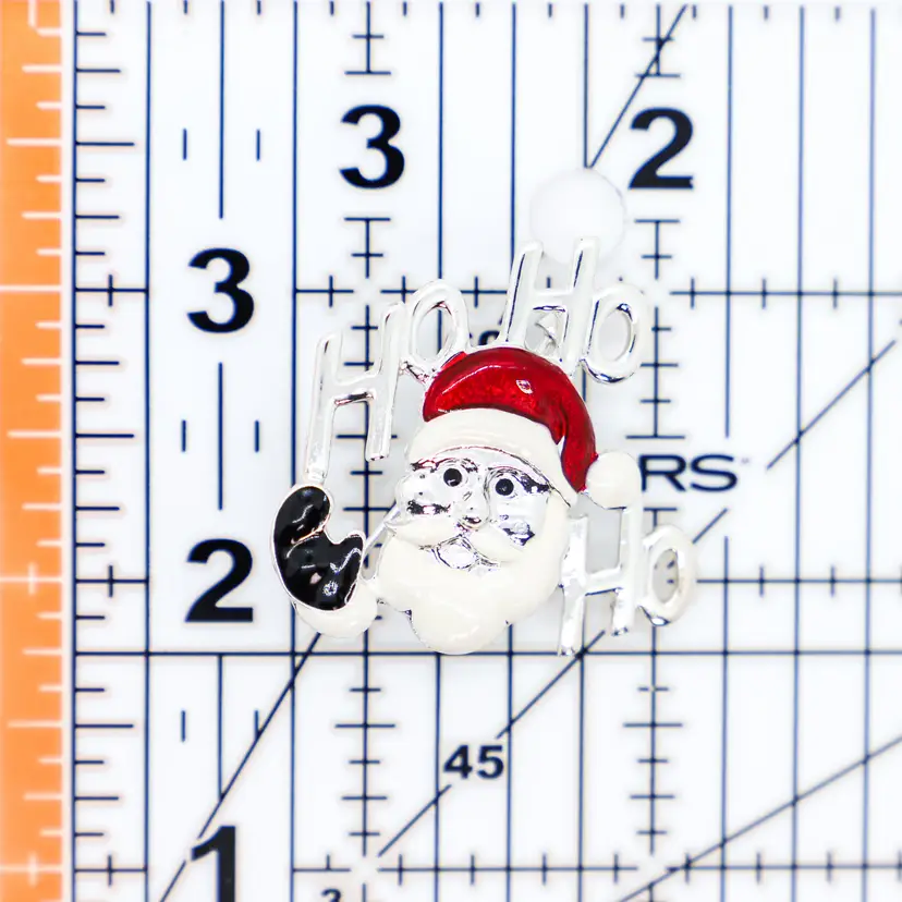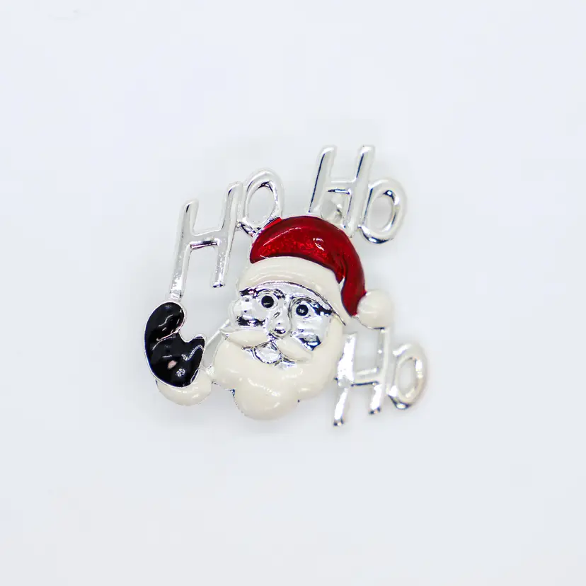 Christmas Brooch Pin Santa Face Ho Ho Ho Silver Tone Enamel. Pre-owned, minimal signs of wear Safety clasp Silver tone with enamel accents Super cute Santa with Ho Ho Ho over his head Approximately 1.25"