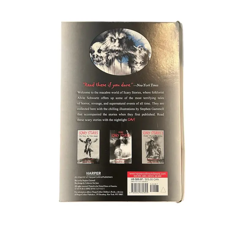 Scary Stories To Tell In The Dark By Alvin Schwartz: Scary Stories, More Scary Stories, & Scary Stories 3. Used good condition.