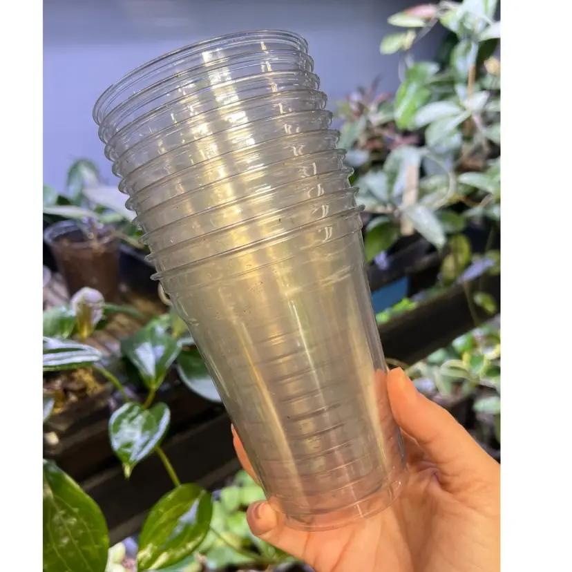 These 16 oz clear plastic cups are a staple in our growing setup—perfect for everything from fresh cuttings to full, blooming Hoyas. Each cup is pre-drilled with drainage holes, so they’re ready to use straight out of the pack.