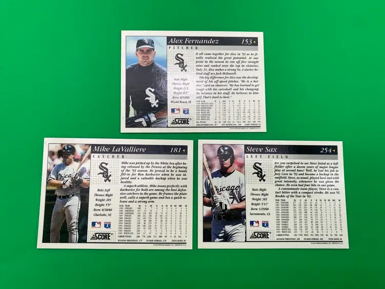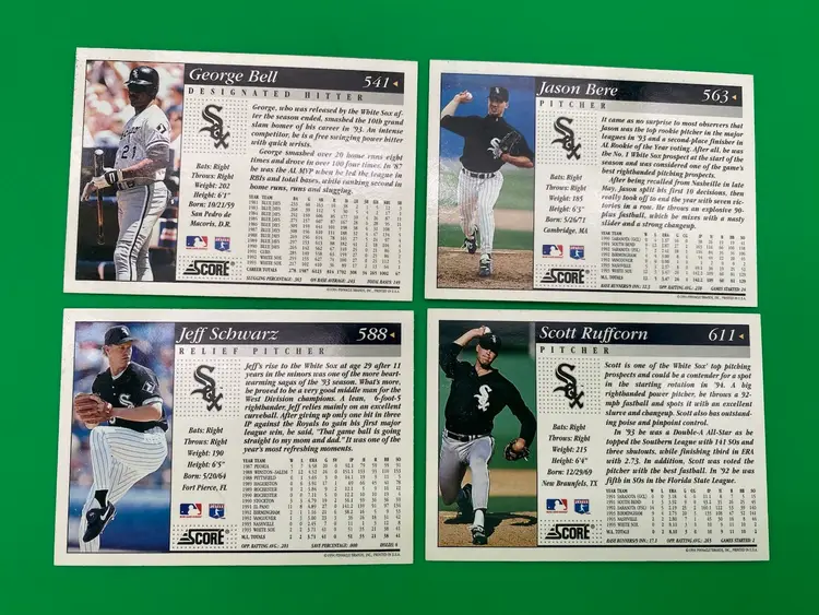 You are purchasing a lot of 10 different MLB Chicago White Sox Trading Cards from the 1994 Score line. These Cards are in overall good condition. See images for all of the Cards included in this listing and a closer look at their conditions.