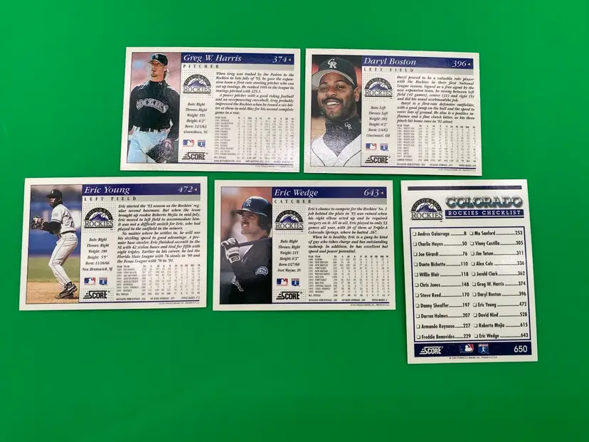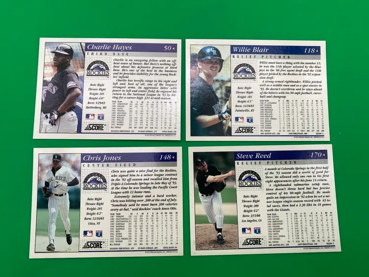 You are purchasing a lot of 14 different MLB Colorado Rockies Trading Cards from the 1994 Score line. These Cards are in overall good condition. See images for all of the Cards included in this Listing and their conditions.