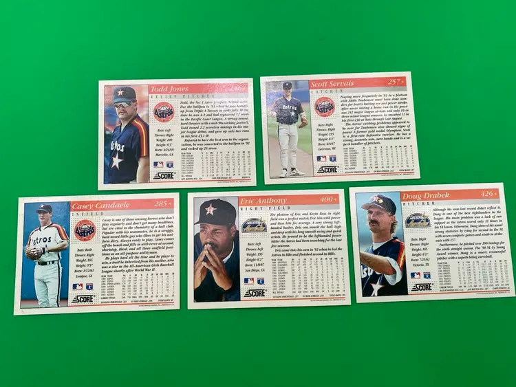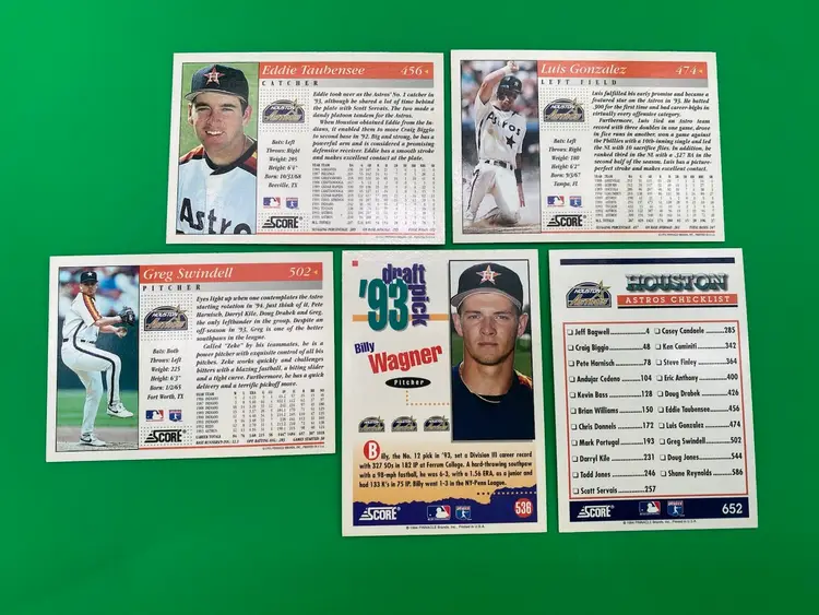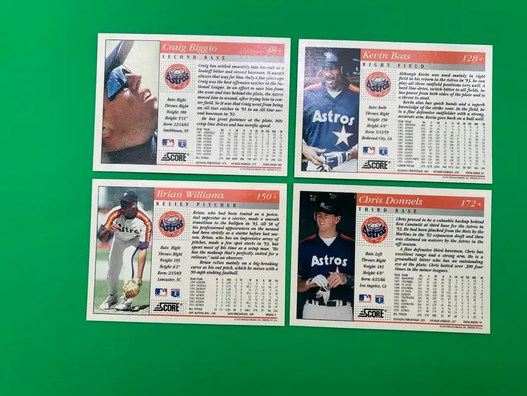 You are purchasing a lot of 14 different MLB Houston Astros Trading Cards from the 1994 Score line. These Cards are in overall good condition. See images for all of the Cards included in this listing and a closer look at their condition.