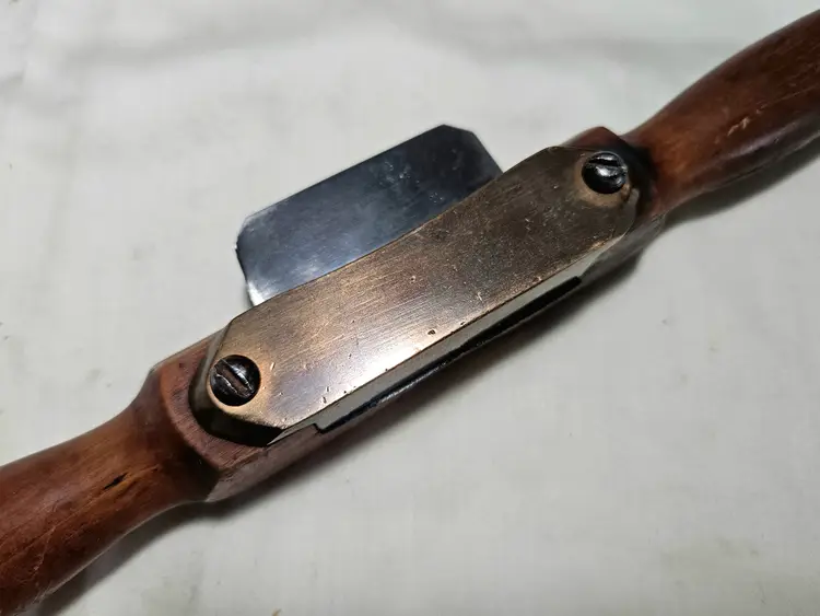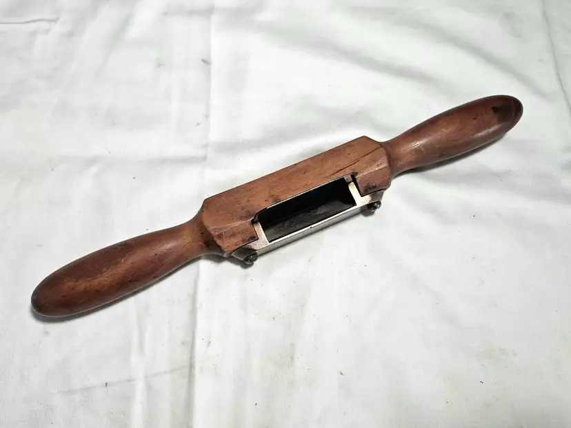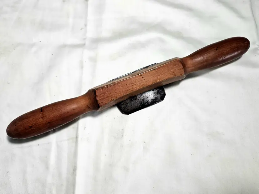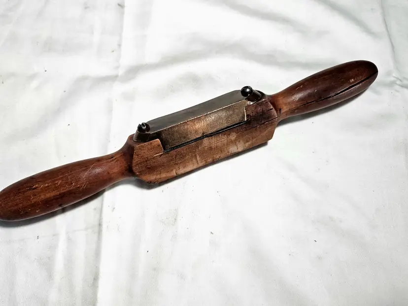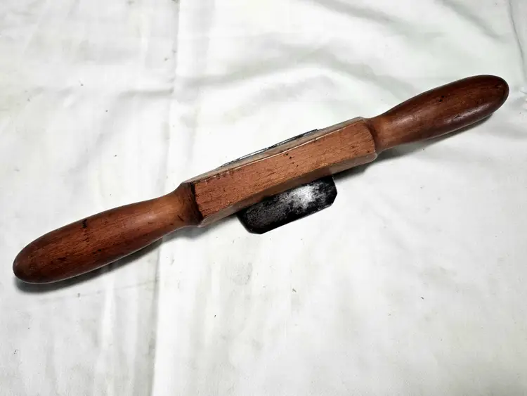 Early wood handle scraper shave. Some checking on one handle. Scraper blade measures ~2-1/4"