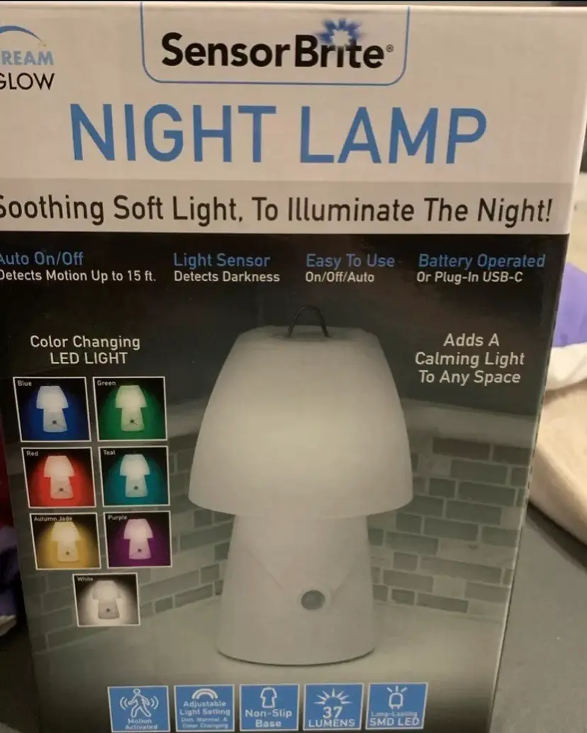 Sensor Brite LED Motion Activated Night Lamp, Seven Colors Base, Brand New in box, price sticker is still in box, that would be the only flaw, if you want to call it that. Excellent condition!