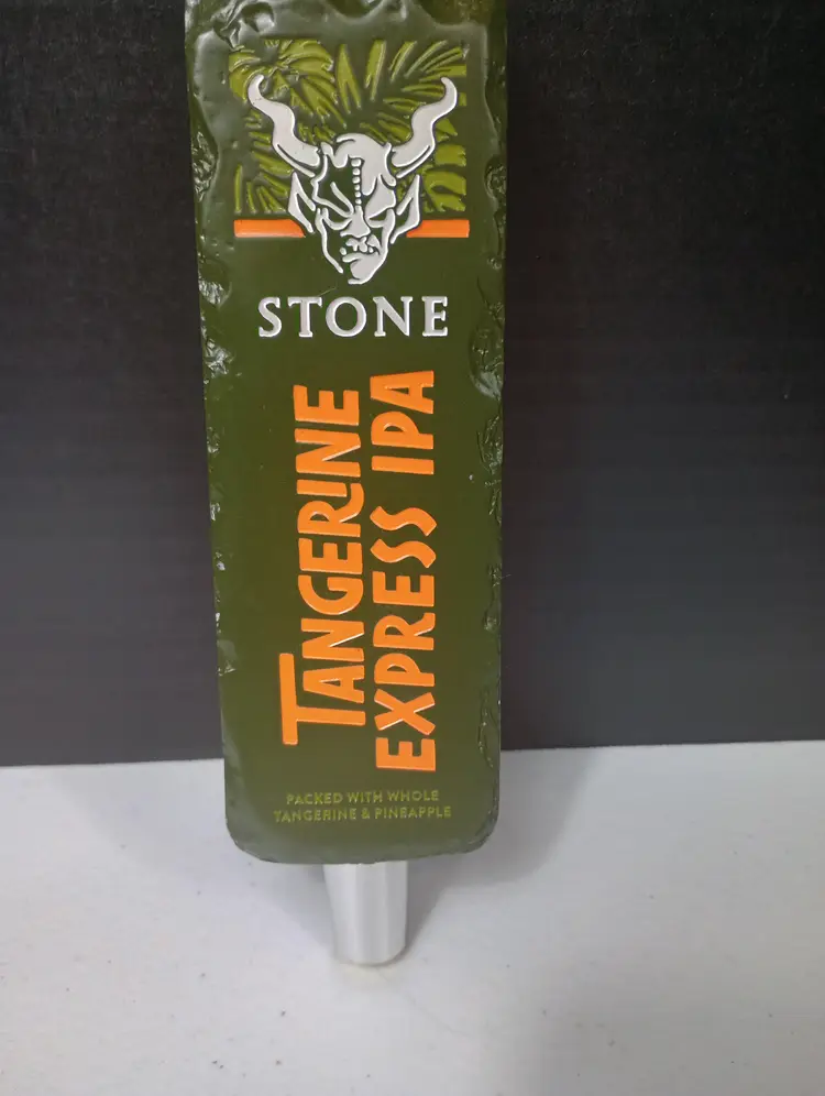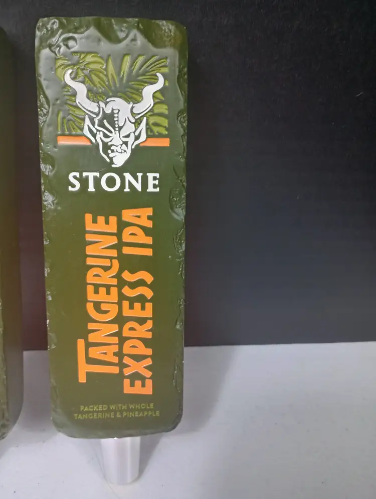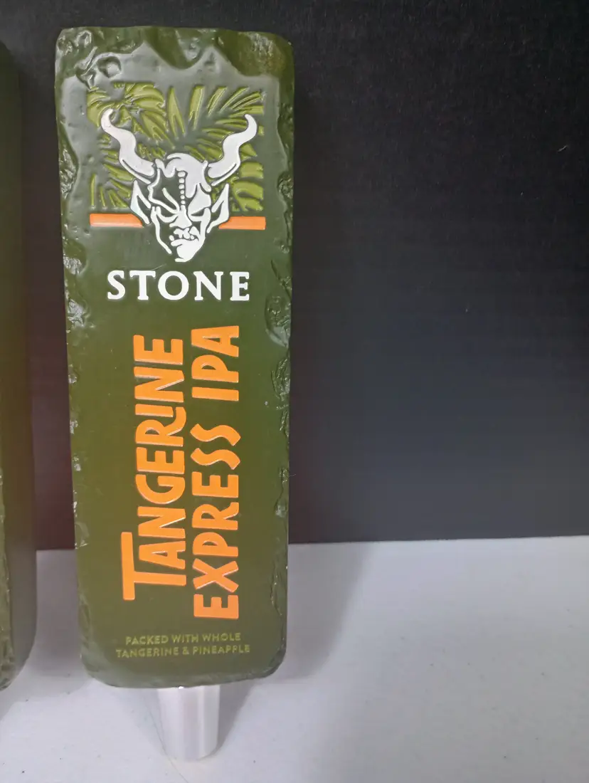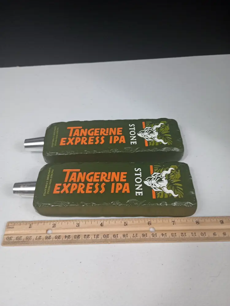 Set of 2 Stone Brewing Company Tangerine Express IPA 8 in Beer Tap Pull Handle. Perfect for the brewer, collector or man cave. In good used condition. Minimal wear.