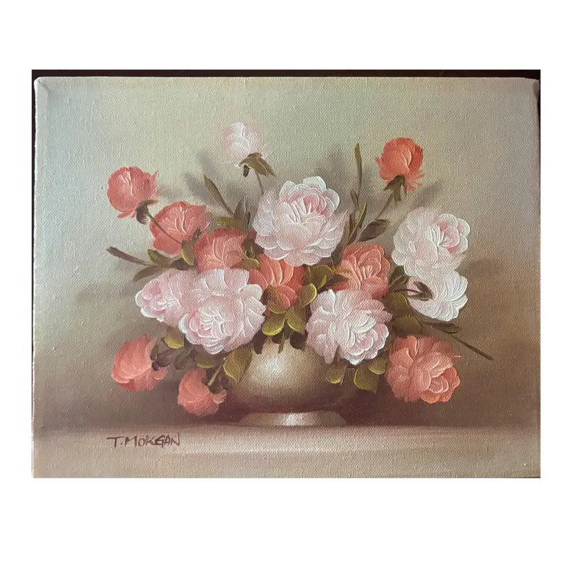 Beautiful matching 8x10 oil paintings of soft pink roses, signed by Robert Cox and T. Morgan. Perfect for cottagecore, shabby chic, or vintage décor.These could be reframed as some paint on corners has been removed from them being framed previously.