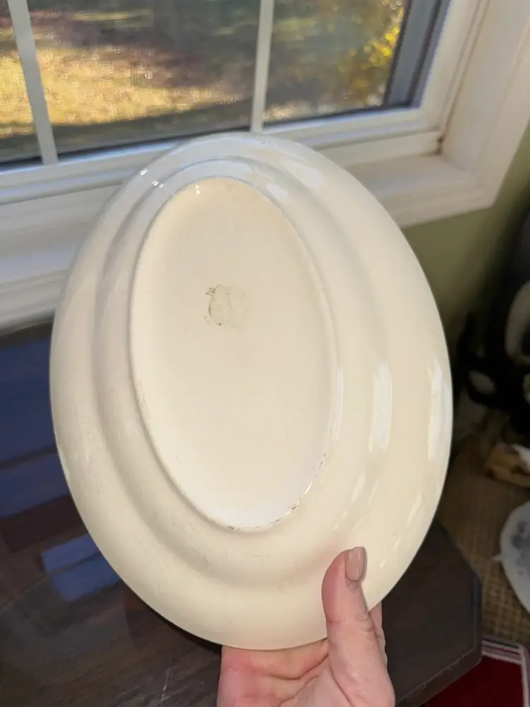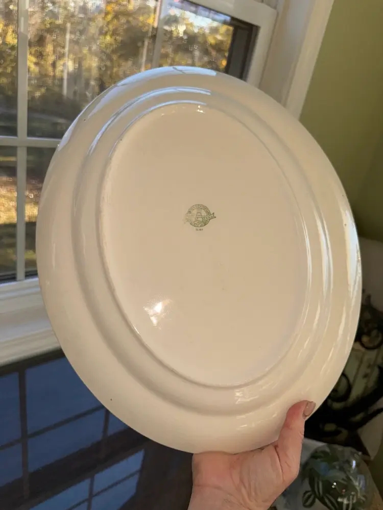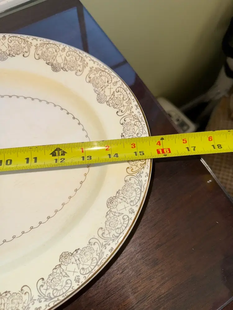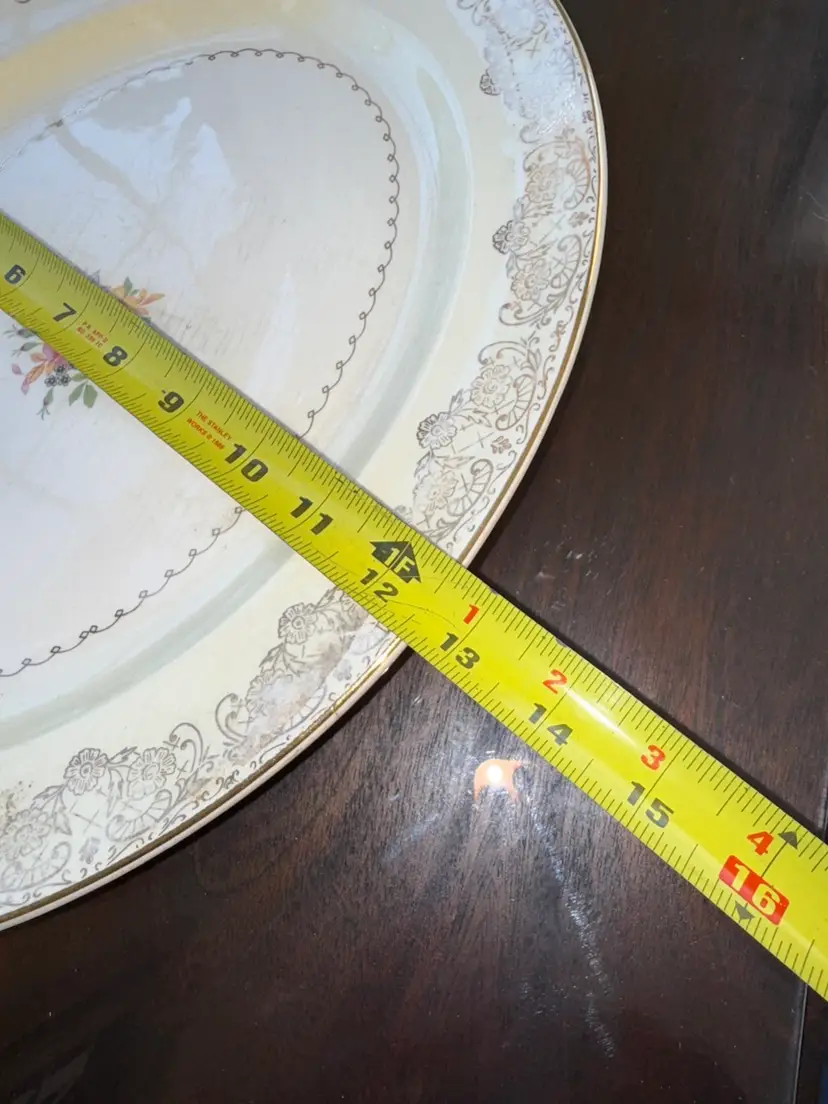 This set of 2 vintage Paden City Pottery serving platters features a beautiful floral pattern with pink roses and 22k gold trim. Made of ceramic with a glossy finish, these oval-shaped platters exude a mid-century modern style from the 1950s. The largest platter measures 16“ x 13“. The other platter measures 12“ x 9“. The multicolor design adds a touch of elegance to any dining table, and the brand's originality ensures a unique addition to your collection. Hand wash only to preserve the vintage charm of these stunning platters. these platters have some crazing due to aging. Beautiful pieces.