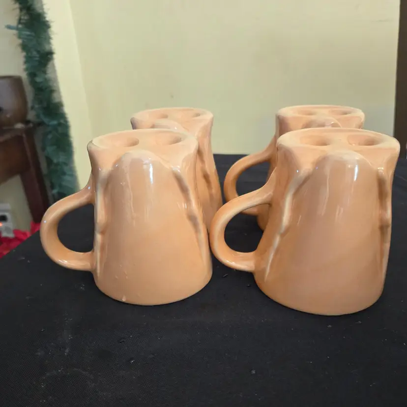 Set of 4 vintage, Pink Ceramic "PIG SNOUT" Mugs that are similar to the one featured on the Jay Leno TV show. The mugs measure 4" tall.