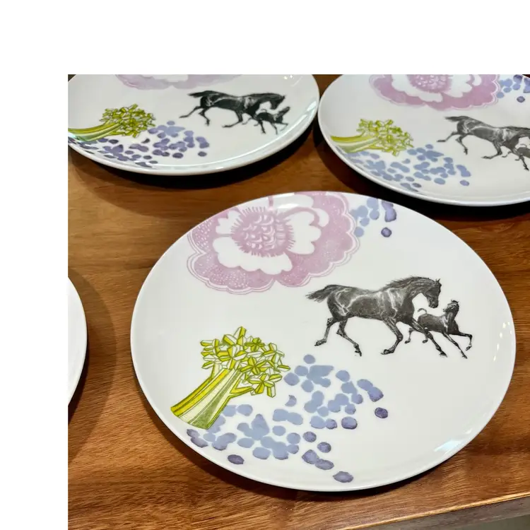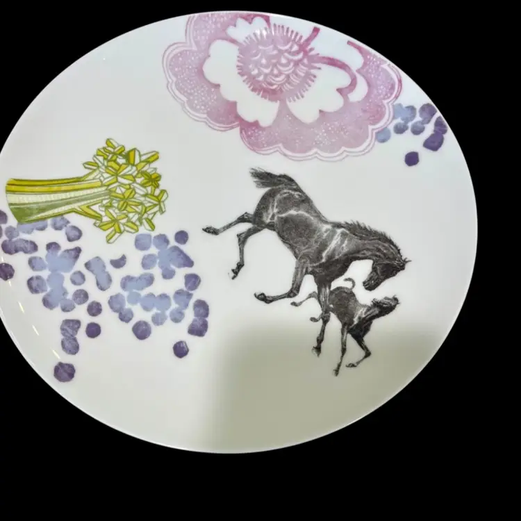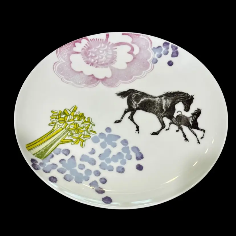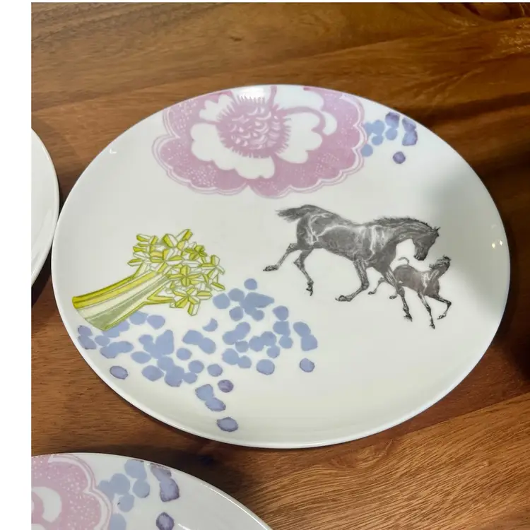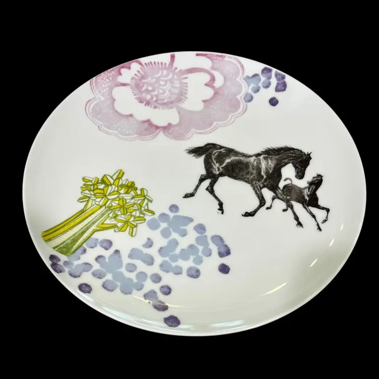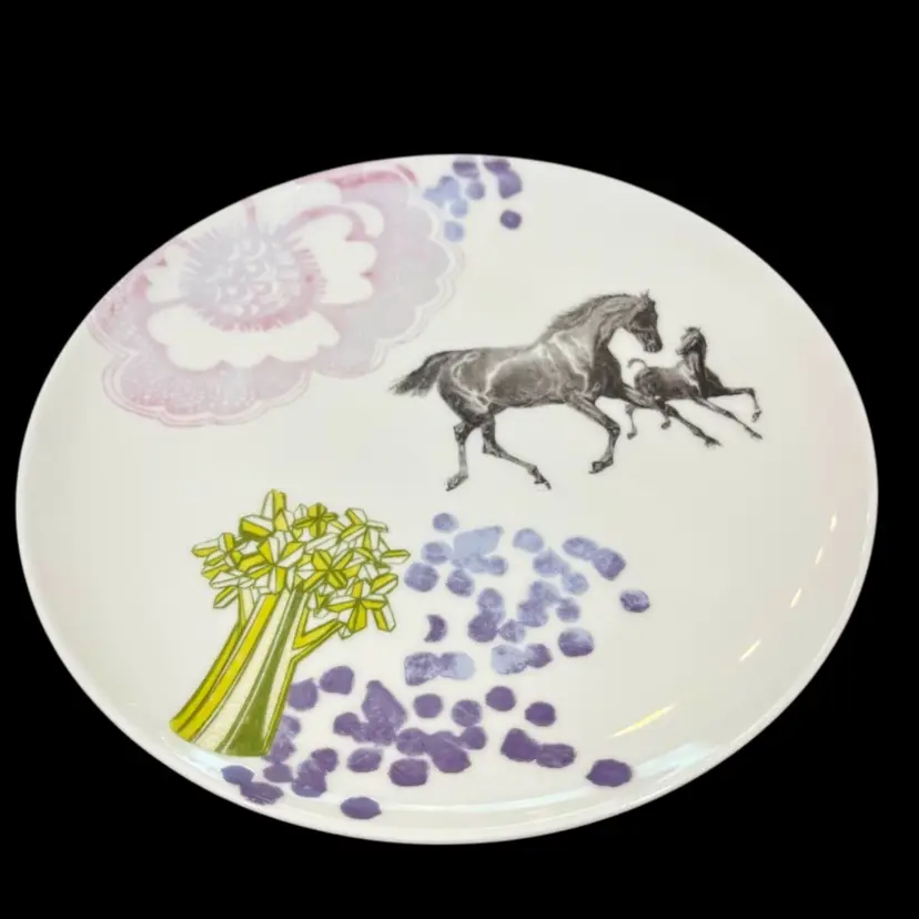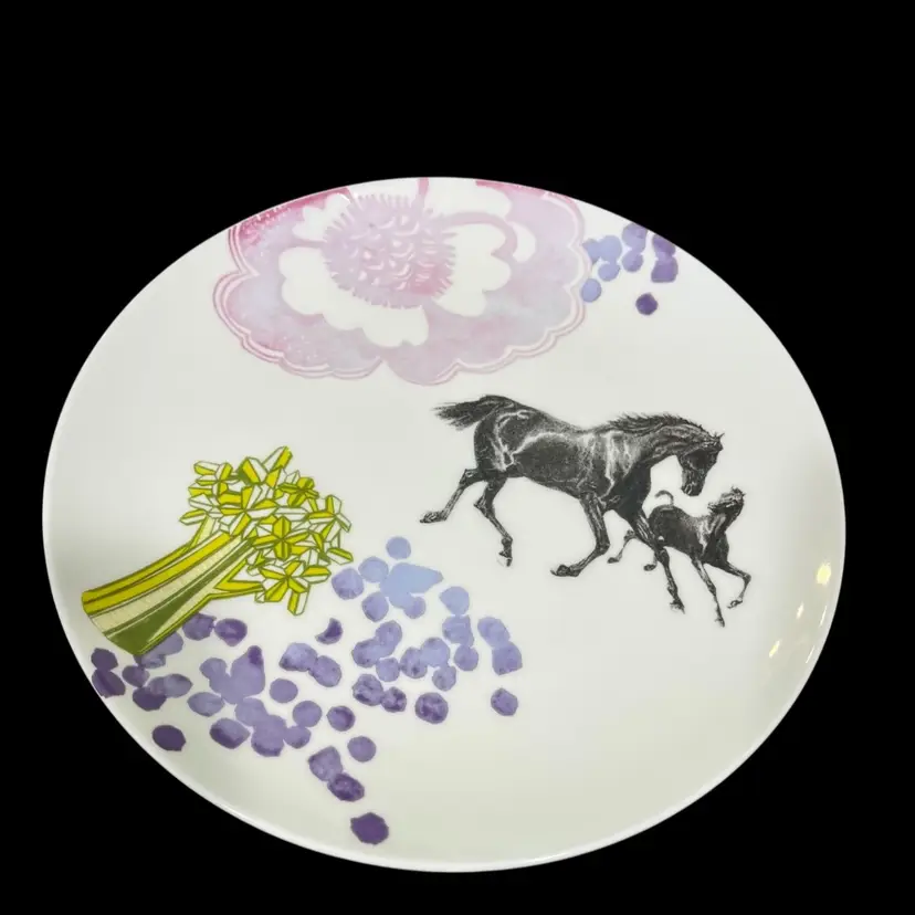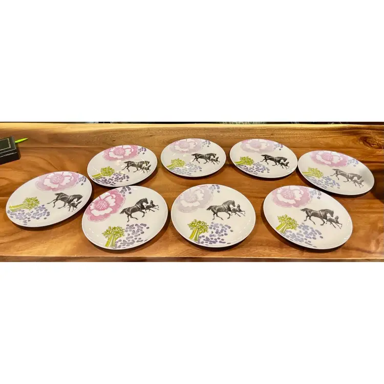 Excellent t condition! No chips, cracks, or utensil marks. Plates feature a design of horses intertwined with botanical elements, showcasing Gallo’s style
