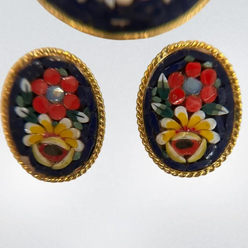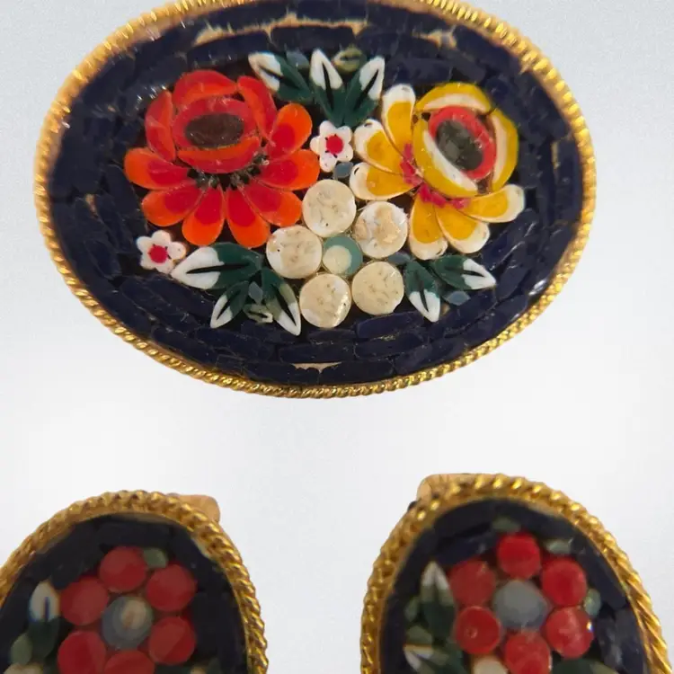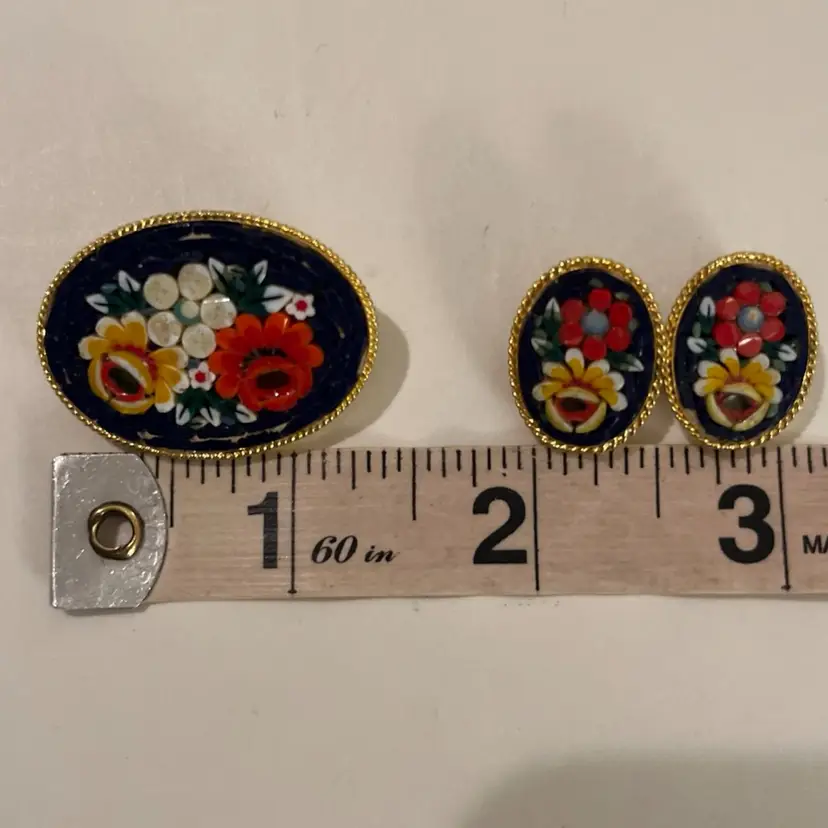 Vintage Italy Micro Mosaic Glass Tile Flower Brooch And Matching Clip Back Earrings In excellent preowned condition Please see pictures for more detail Thanks for looking 🌸