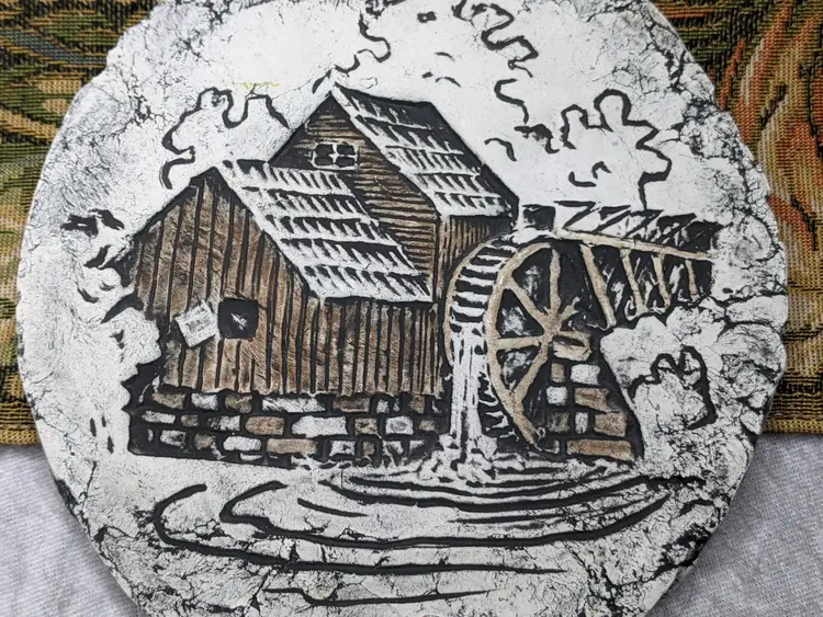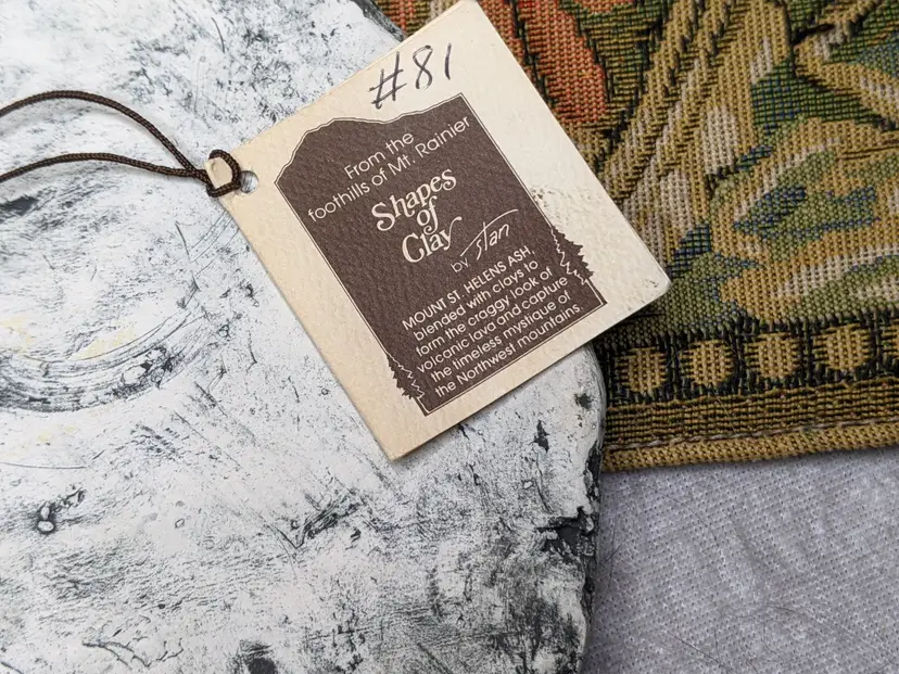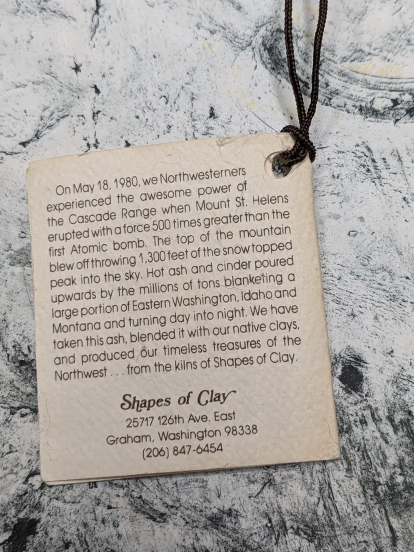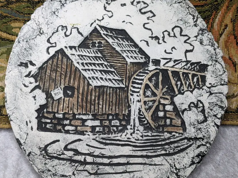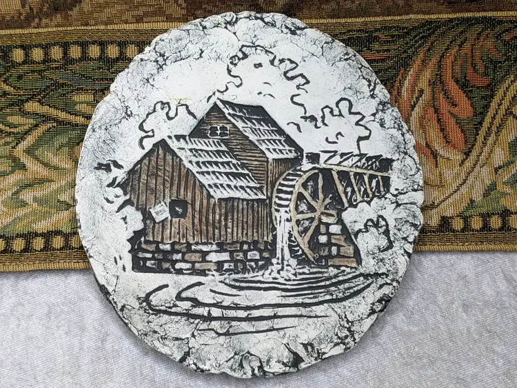 Shapes Of Clay By Signed STAN With Tag #18. It is 7"Made from Mt saint Helens Ash. It is the Old Mill with a Waterwheel Hanging wall plaque. Great condition Clean with no damage. no weird smells. Please check the photos for details. Comes from a smoke free home. We do have pets. .