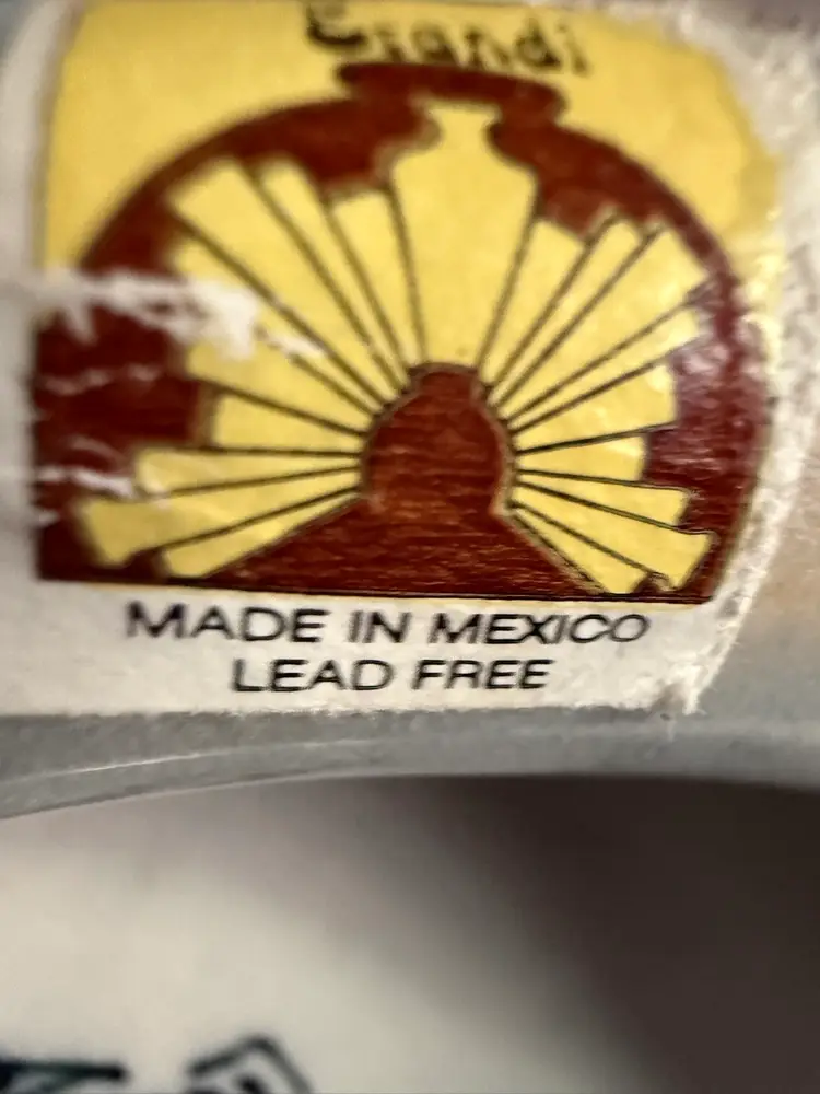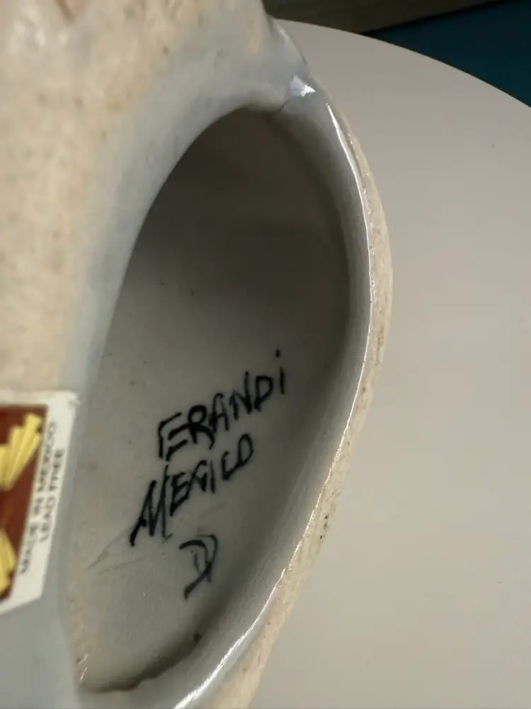 Erandi is a recognized studio name associated with quality Mexican hand-painted ceramics. Erandi studio, a known producer of traditional Tonalá Mexican folk art pottery. The shell features the classic cobalt blue and orange/yellow floral patterns common to the style from the 70’s-80’s. No visible chips, cracks or scratches.