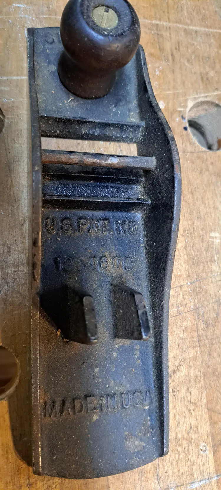 Shelton #12 Block plane. Both had the end of there iron adjuster broken, but you still can adjust the iron. I believe this is a common issue with these adjusters. Patten # 1914609 in the body.