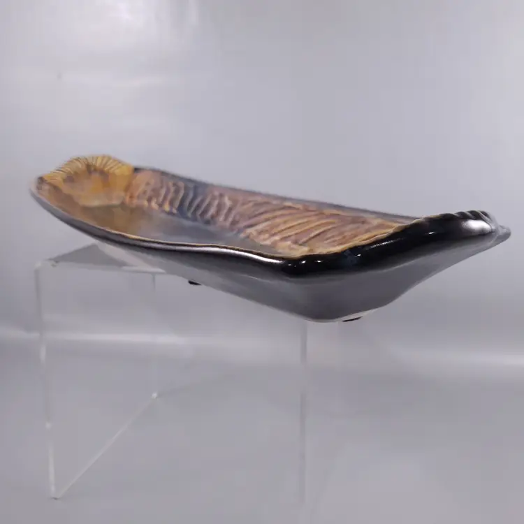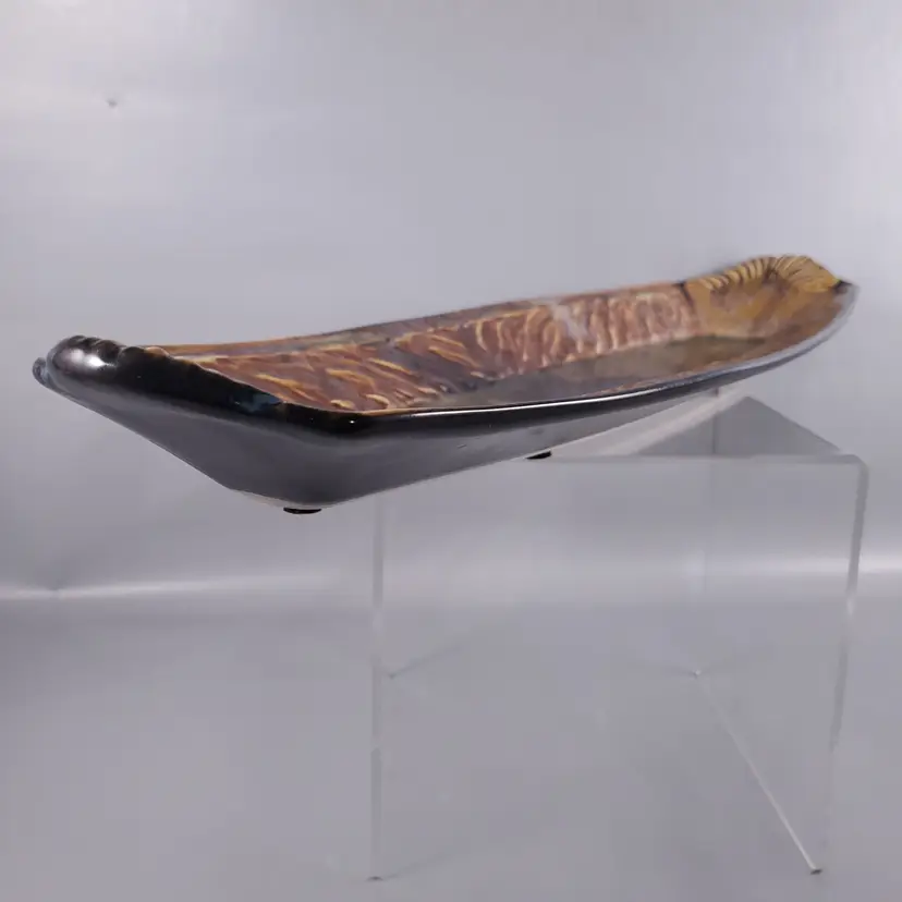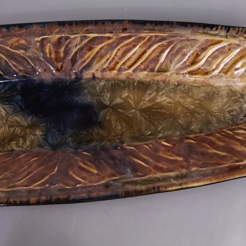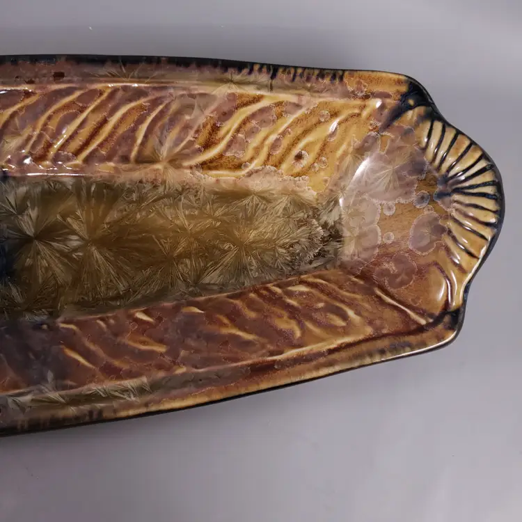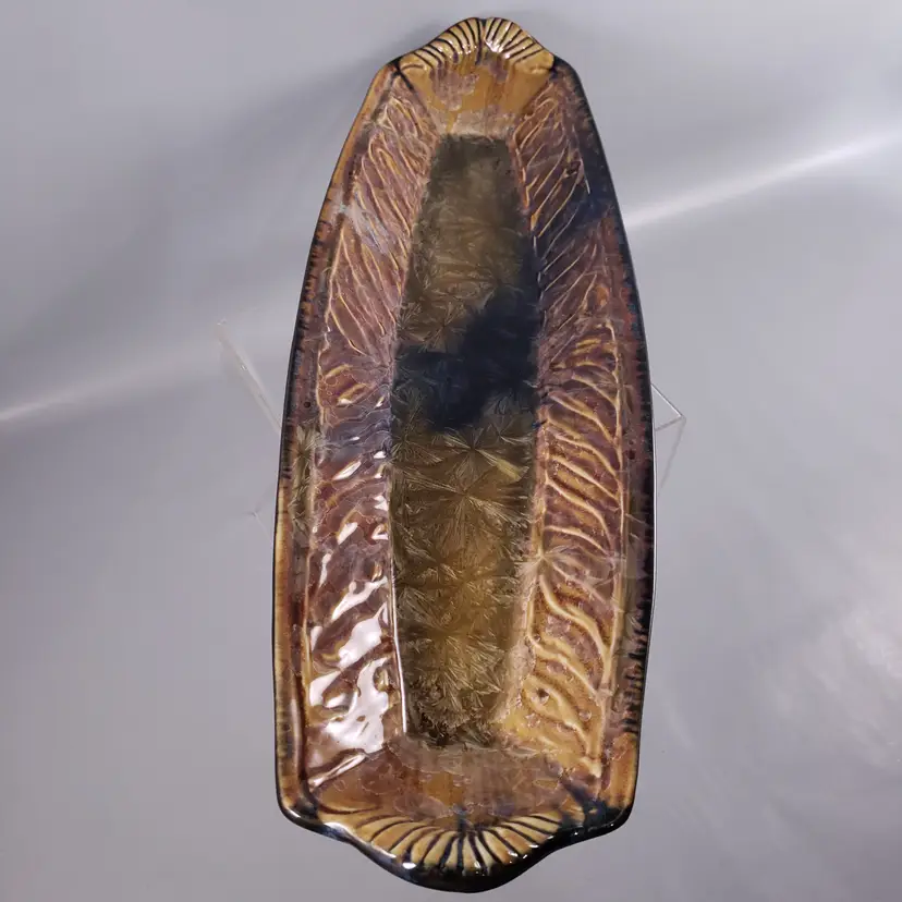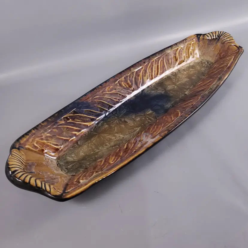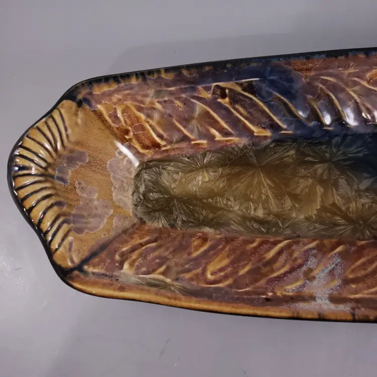 SIGNED BILL CAMPBELL Studio Art Pottery Crystalline Elongated DISH TRAY