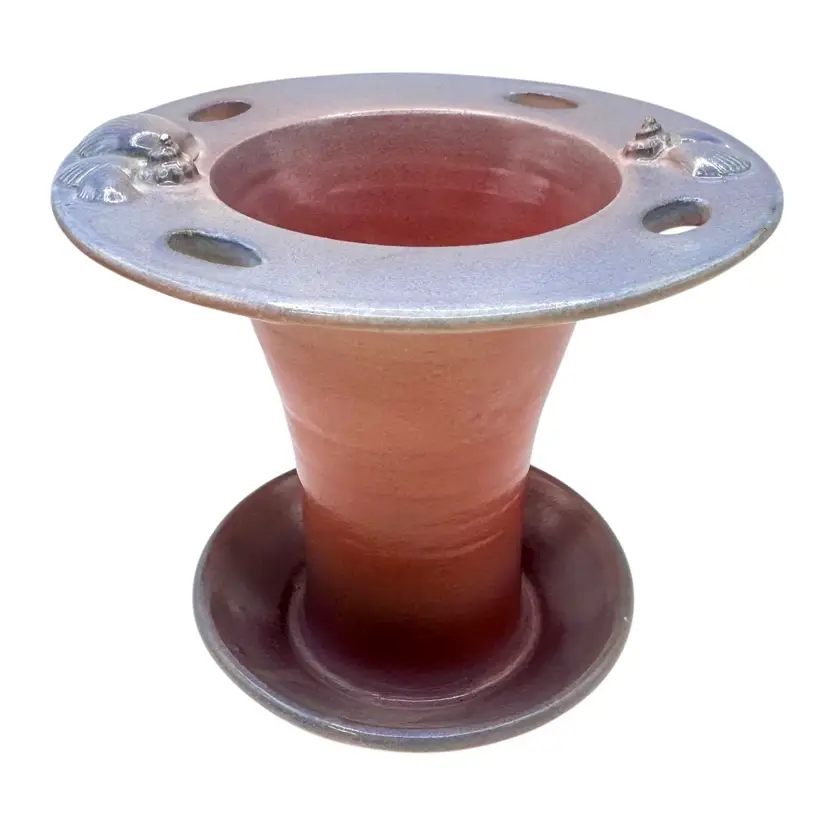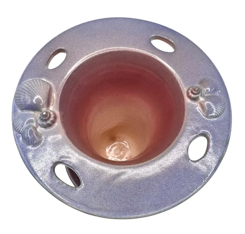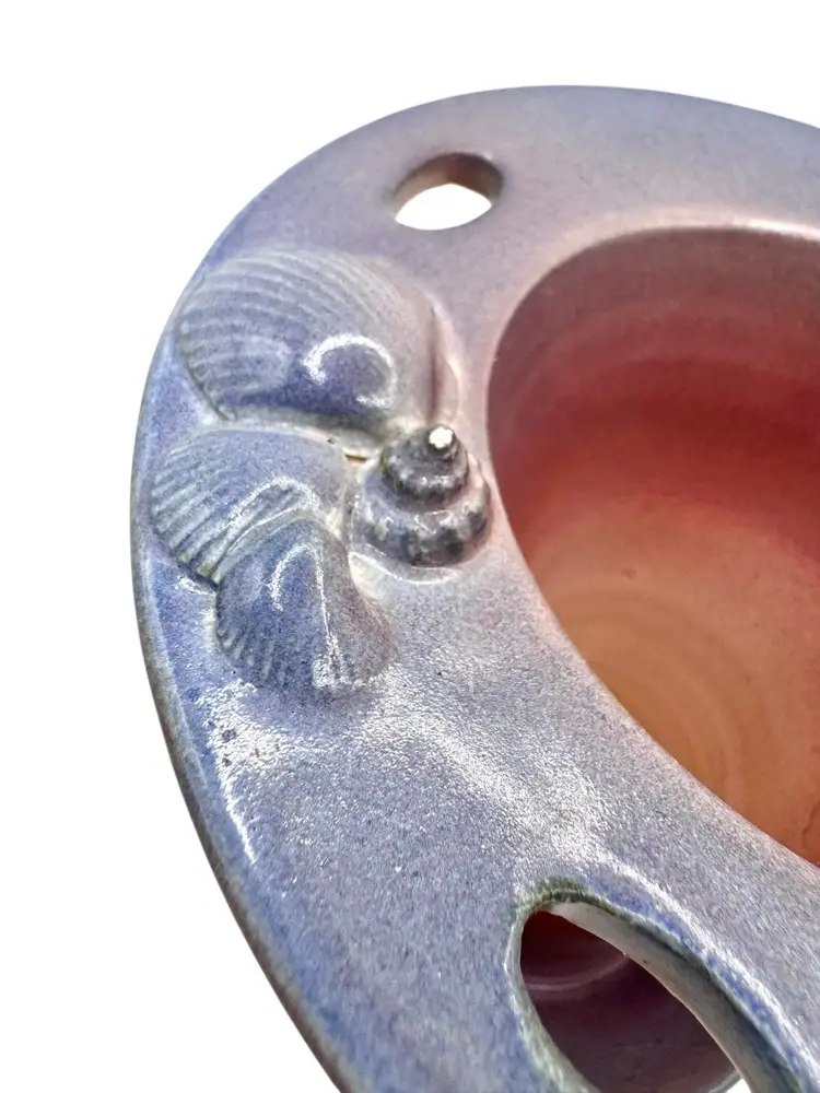 Pretty ombré vessel with raised seashells around the rim. It can hold toothbrushes, or be used as a vase.