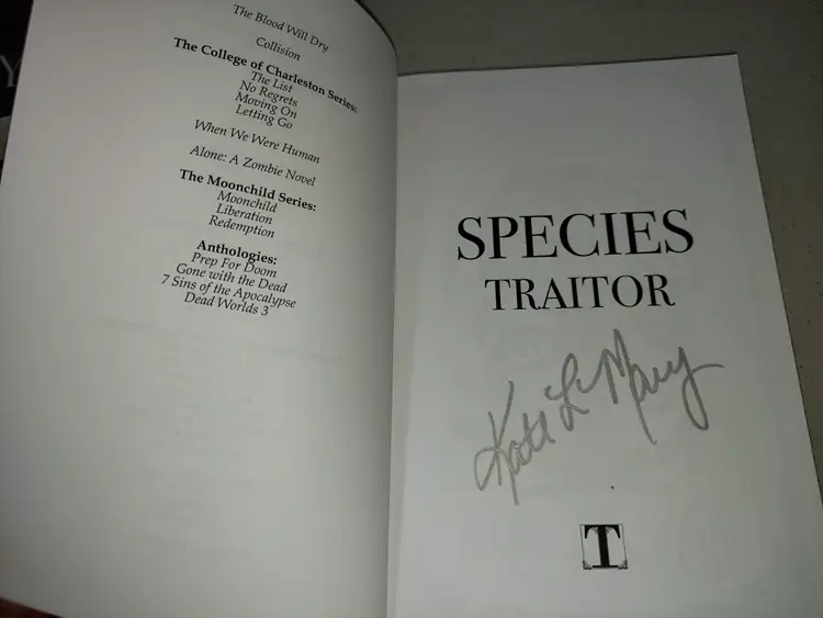 Kate L Mary SIGNED Species Traitor Paperback. No rips or tears, good binding, a little cover wear, clean copy with no markings.