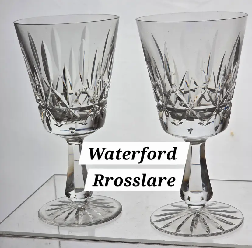 6.75" high 3.5" in diameter. 2 pieces of Signed Waterford Rosslare Goblets. In very good used condition