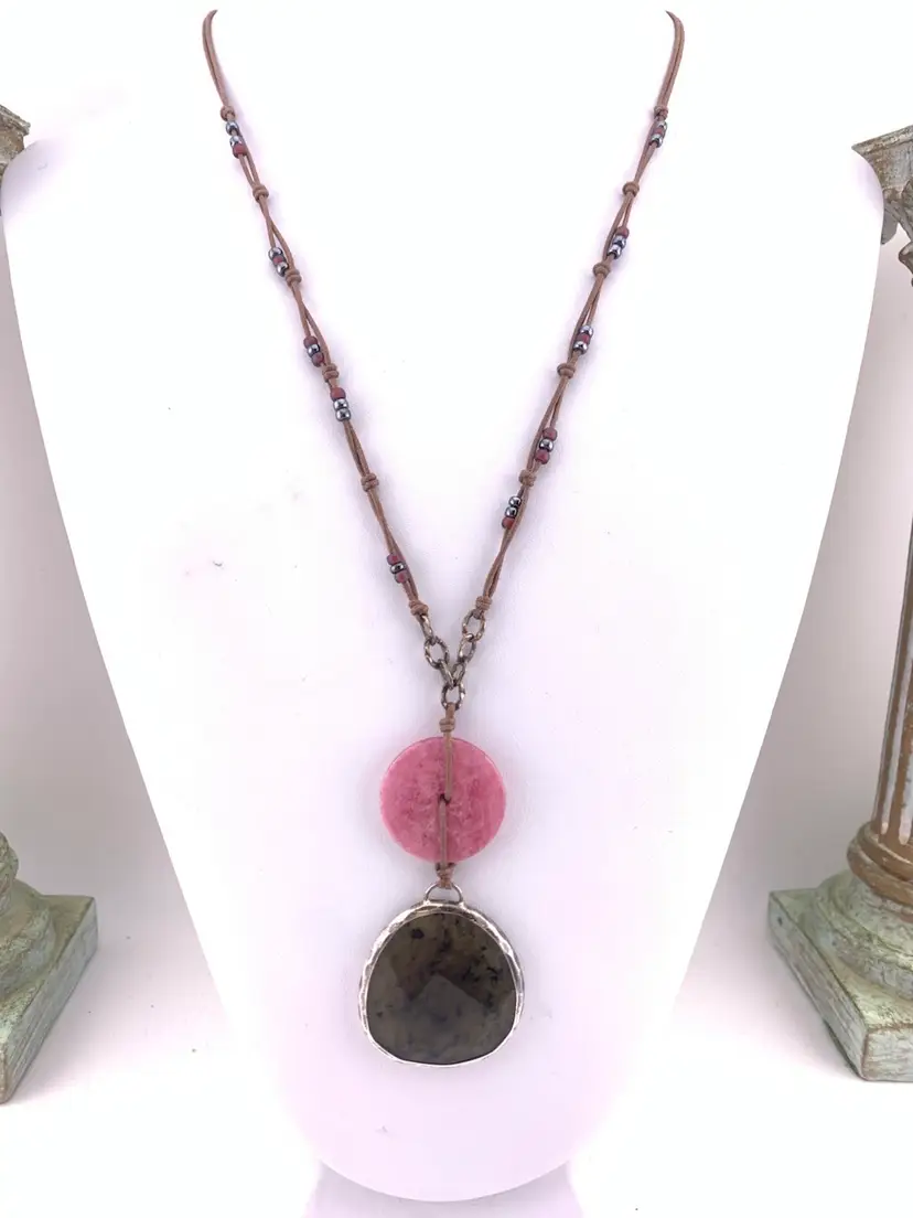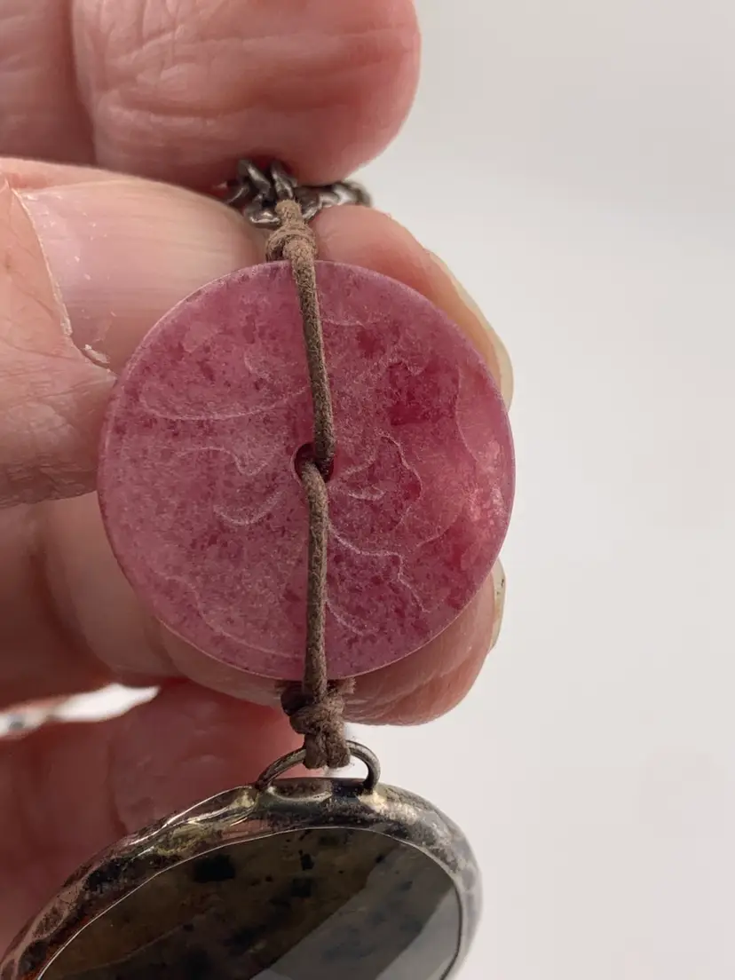 This cutie is from silpada and has the hang tag. Can be worn anywhere between 20 1/2 and 22 1/2 inches. The raspberry quartzite is etched with a floral pattern.
