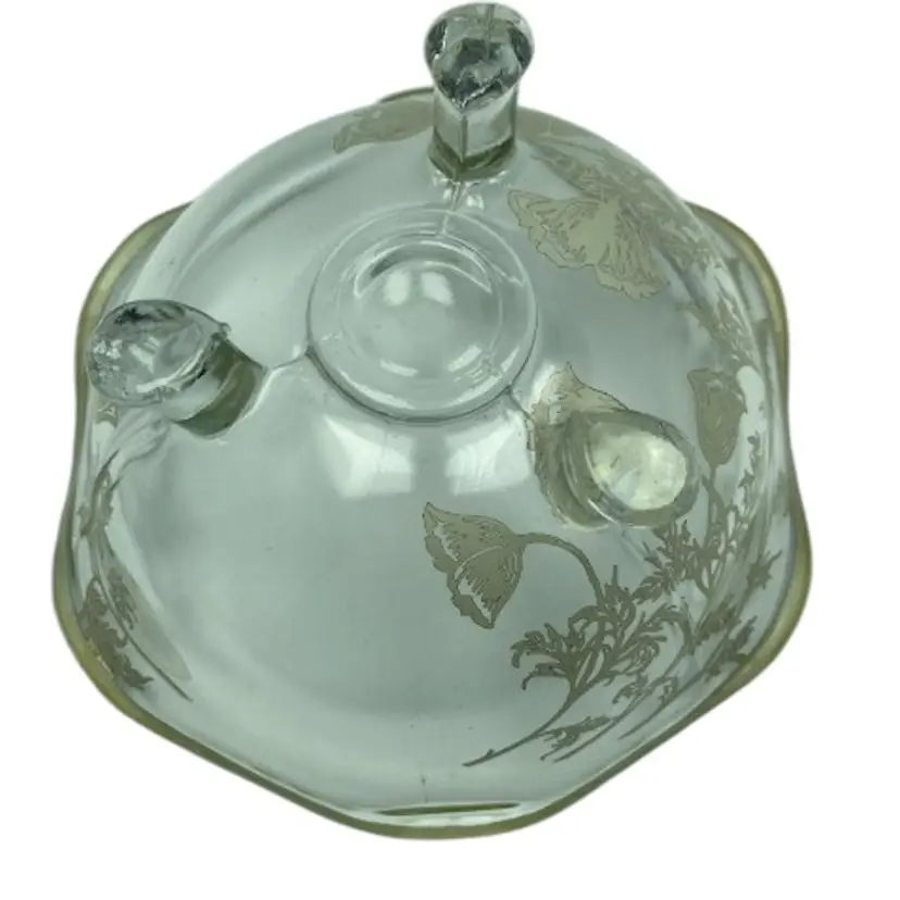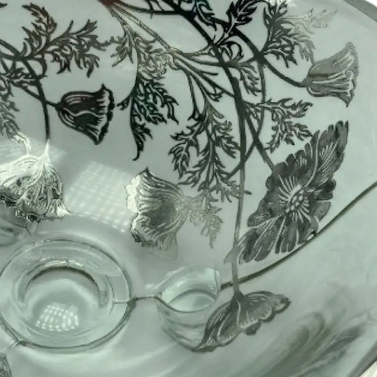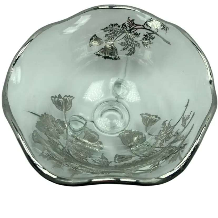 Silver City the maker of this poppy bowl did a very heavy silver overlay, very pretty bowl, it is in very good condition no cracks or chips.