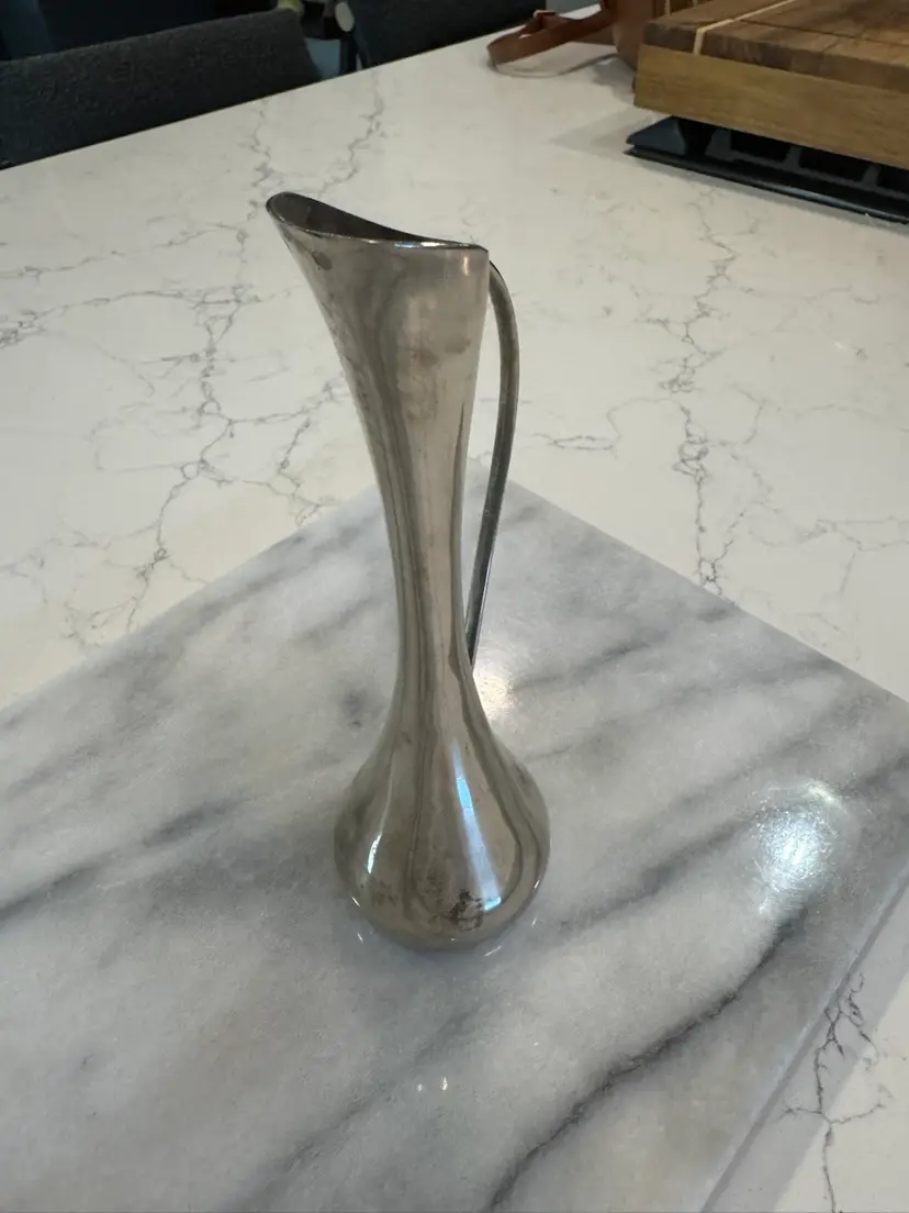 Vintage mid century silver plated bud vase. Heavy for its size and elegant in its simplicity.
