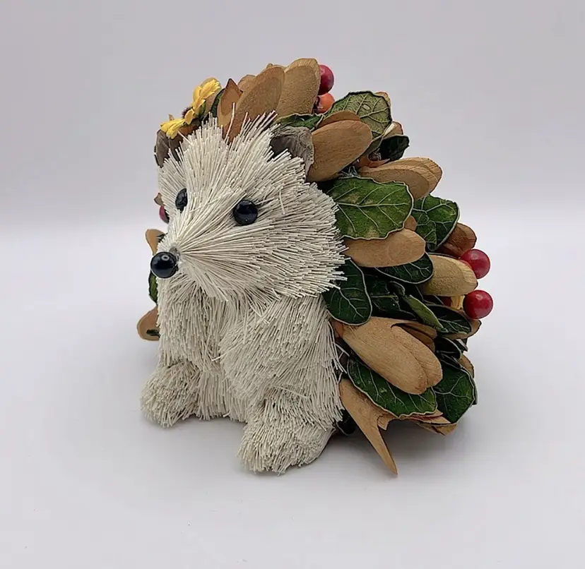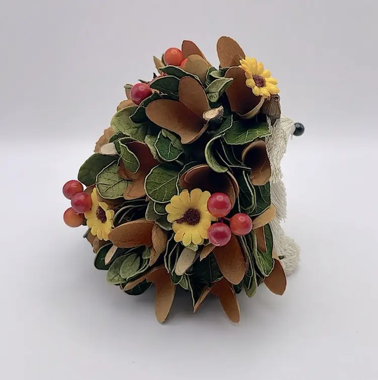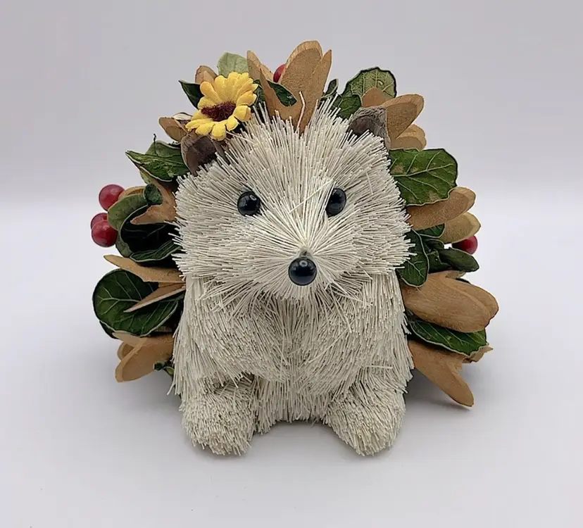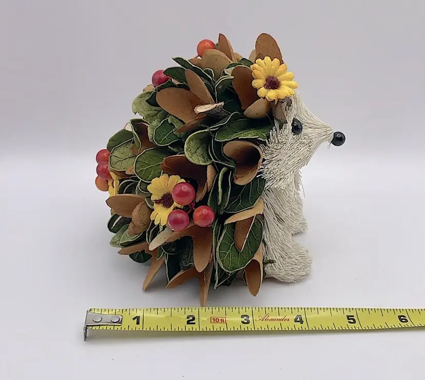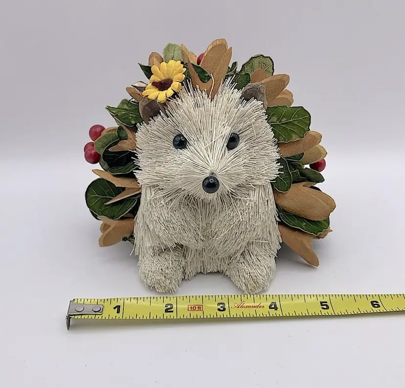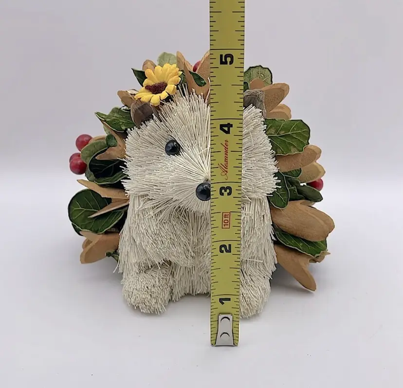 Sisal Hedgehog, Faux Flowers/Berries/Leaves along with Wooden Accents, 5” Tall Please see pictures for measurements.