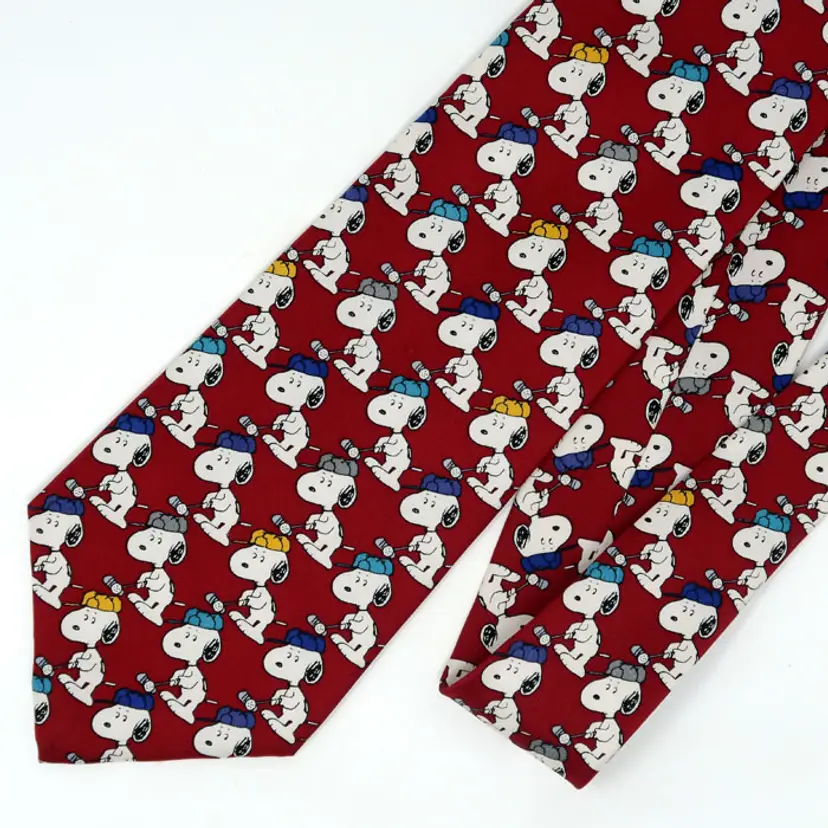 All work and no golf means you need to get your priorities straight! Keep a reminder to get out side and putt on grass with your pal Snoopy and this lovely necktie. This vintage Peanuts tie shows minor use.