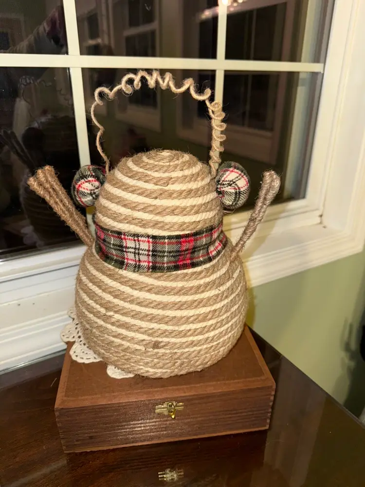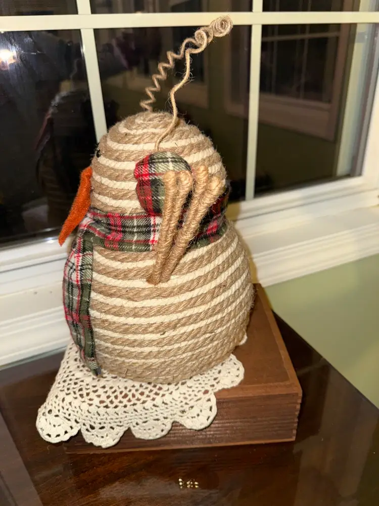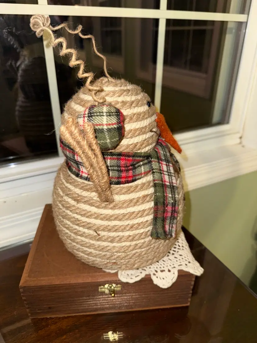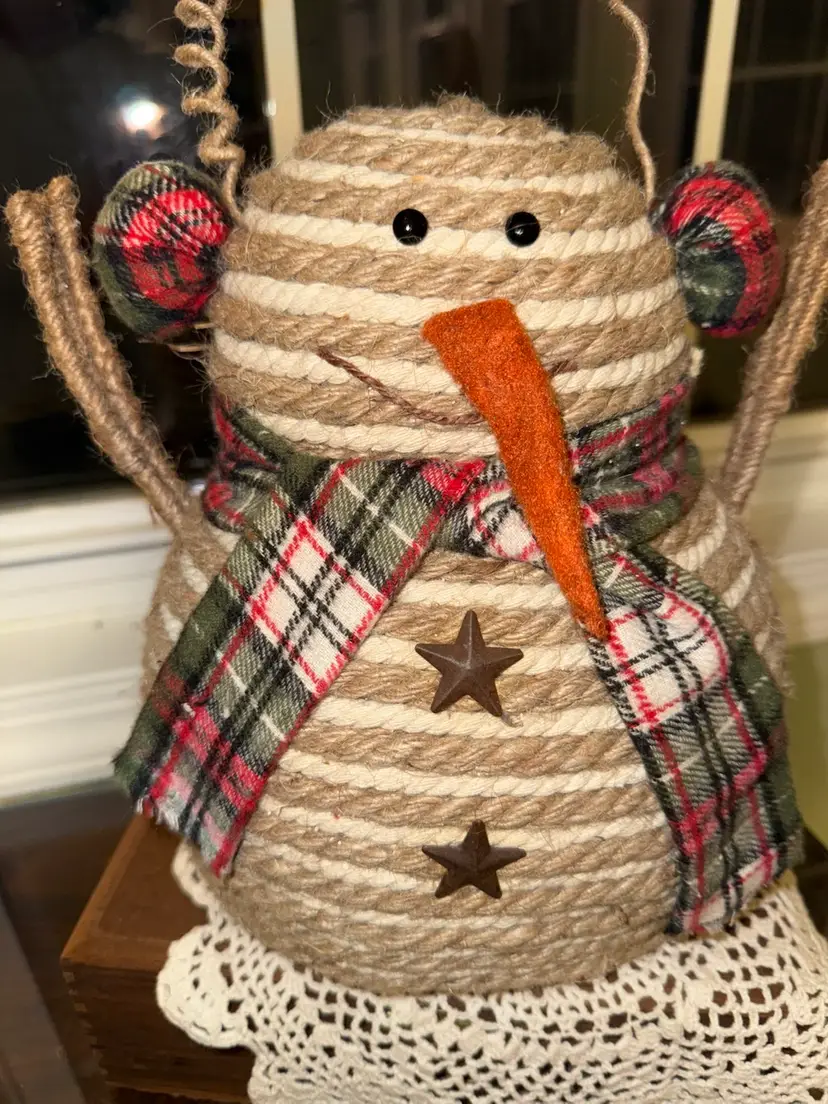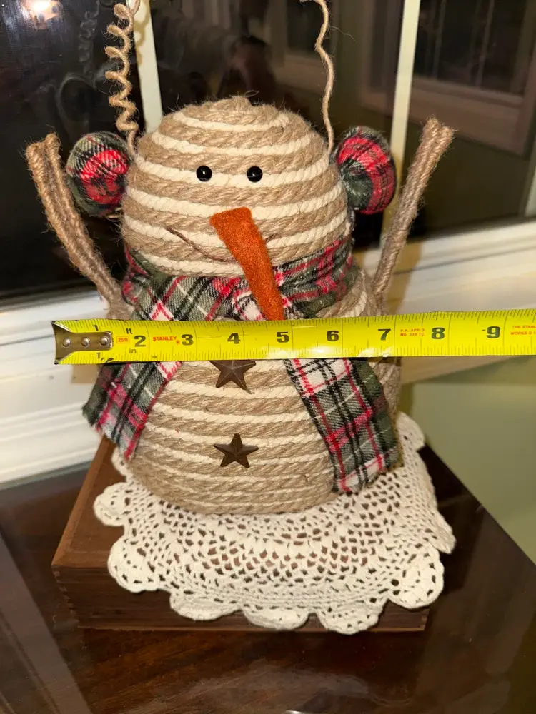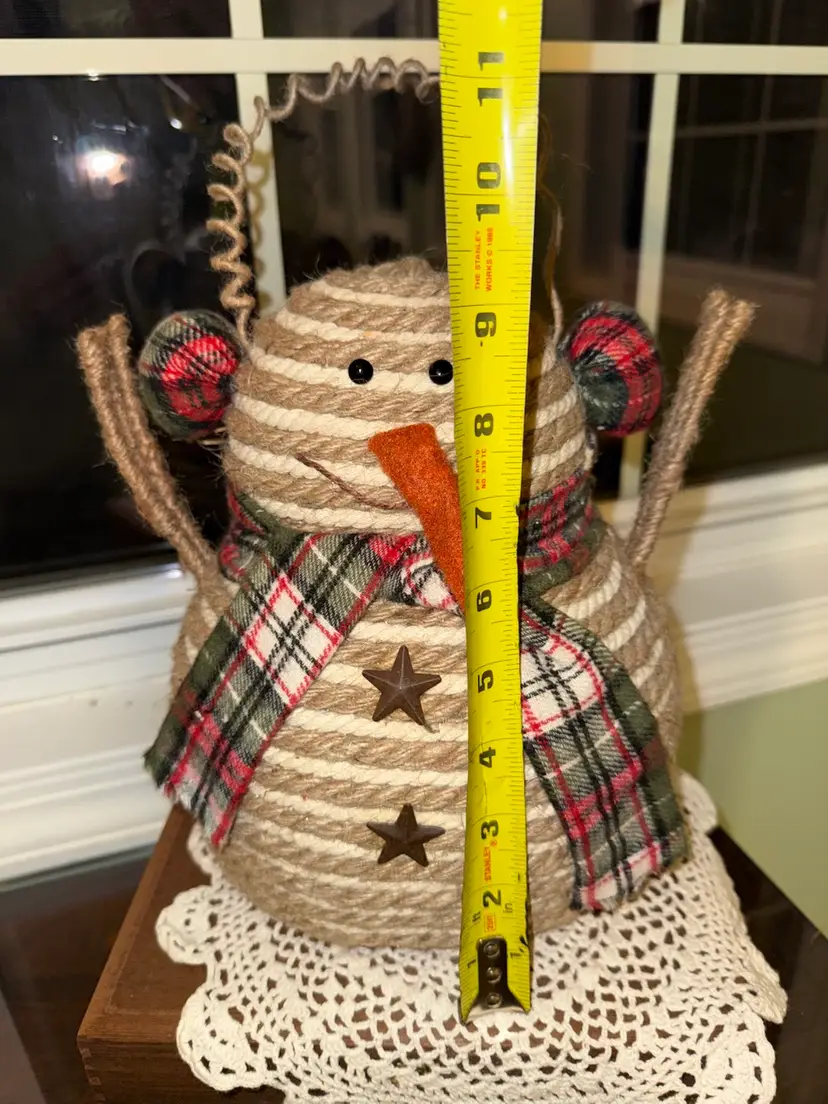 This Snowman 9.5" Decor Rope with Plaid Scarf is a charming addition to any rustic farmhouse style holiday decor. Made of rope and fabric in shades of brown, this medium-sized ornament is perfect for Christmas celebrations. The unique design of the snowman adds a whimsical touch to your home during the festive season.