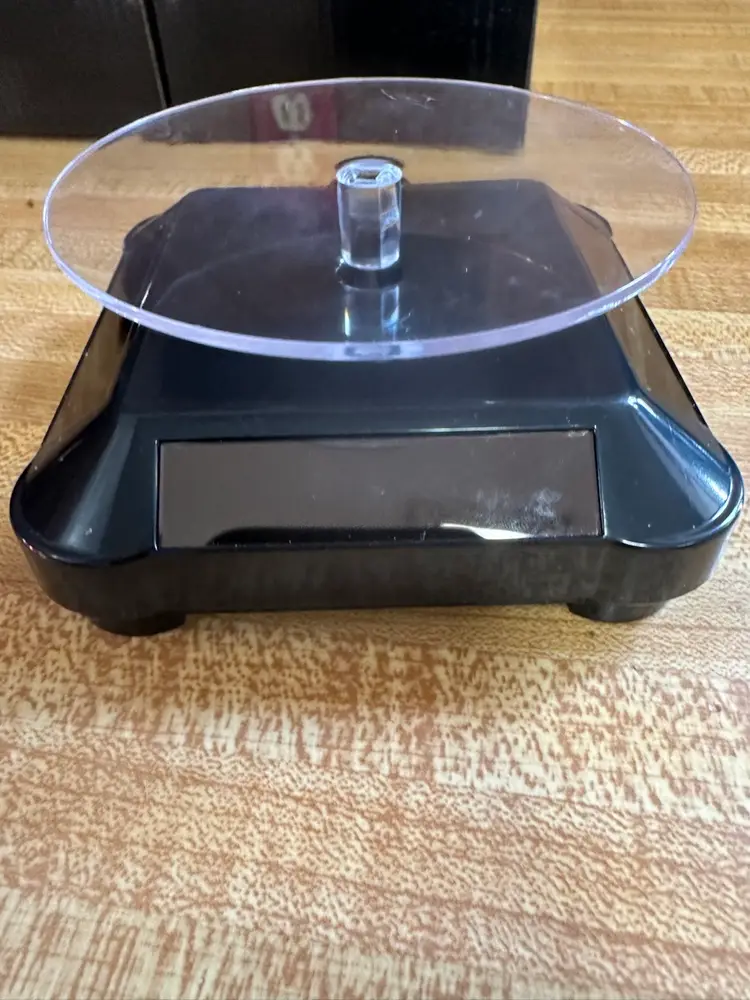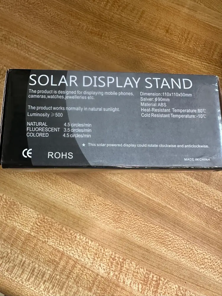 Lot of 4. Designed for displaying mobile phones, cameras, watches, jewelry, etc. Dimensions are 110x 110x 50 mm. All of the stands are black and not golden as the box depicts. You can also use a battery to power these display units.