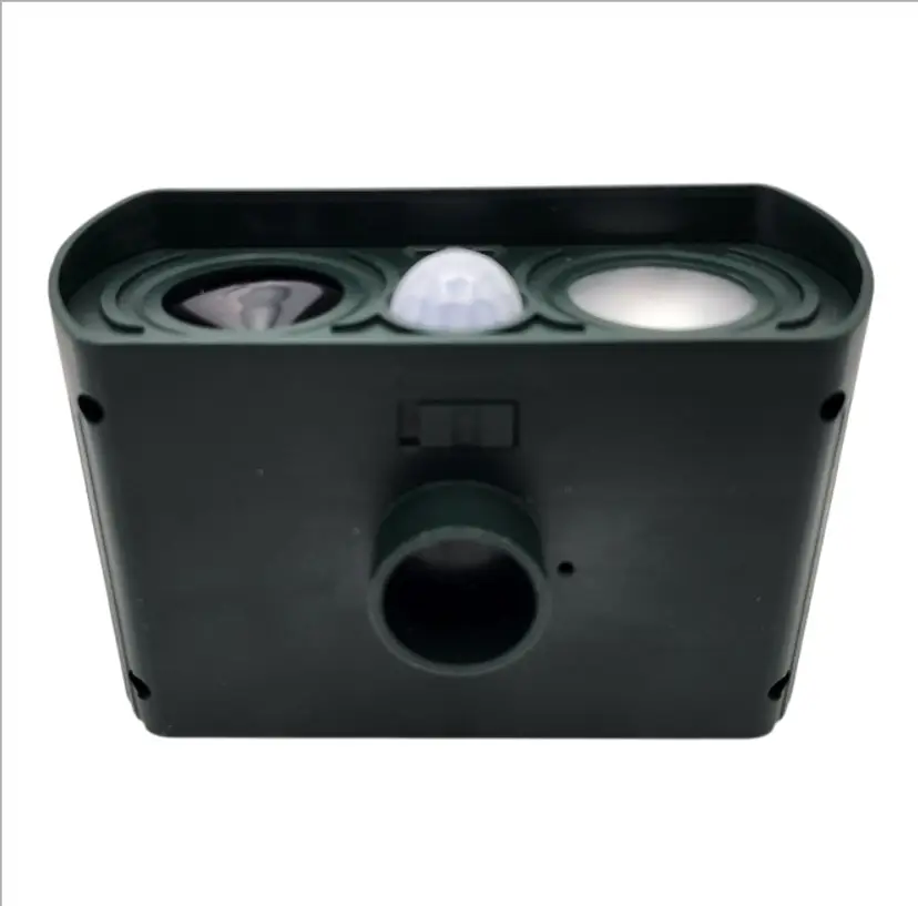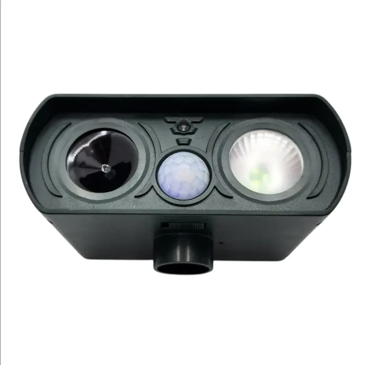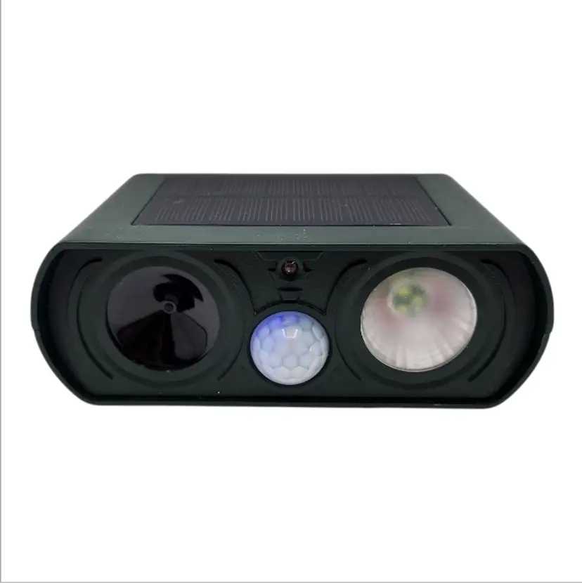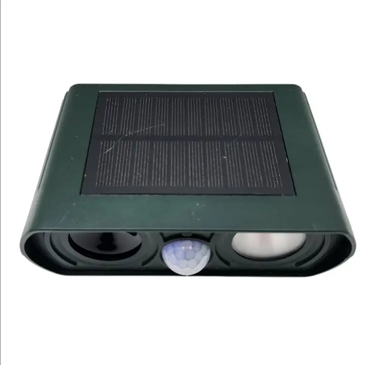 The Solar Motion Ultrasonic Pest Repeller with Strobe Light is a green, outdoor-rated device constructed from durable plastic. It is powered by a solar panel and utilizes ultrasonic sound waves to deter a range of pests, including rats, mice, birds, cats, small animals, rodents, and dogs. This repeller is waterproof, weather-resistant, and user-friendly, making it a practical solution for garden and yard pest management. Its streamlined design and solar power capability offer an effective and environmentally conscious alternative to harmful chemicals or traps for outdoor animal deterrence.