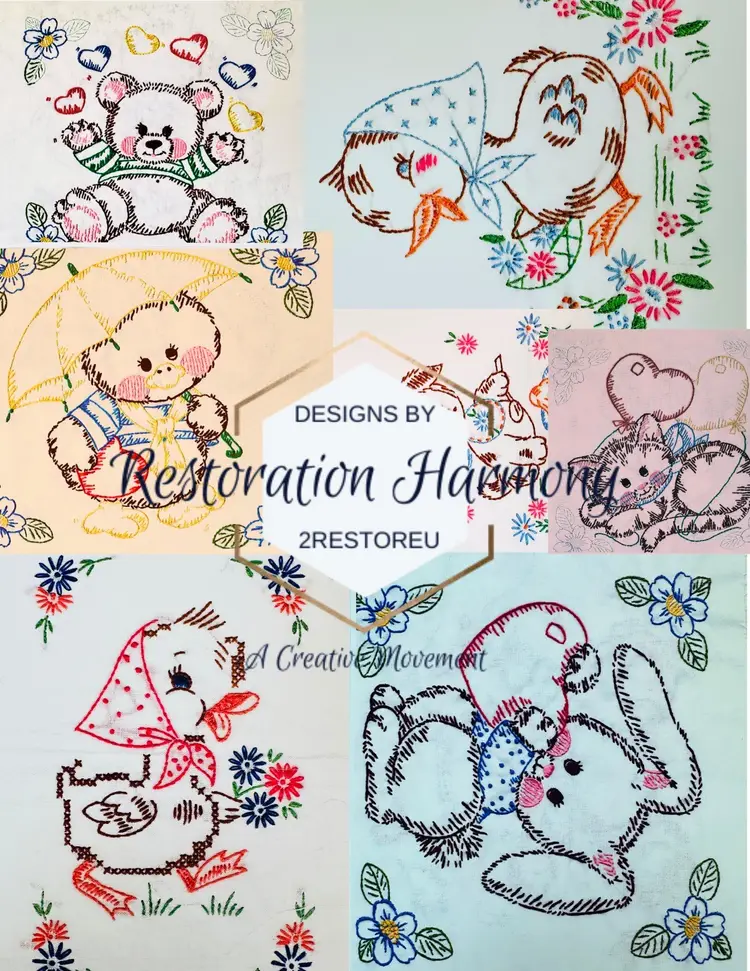 So much fun! These original handmade embroidery pieces were found at an estate sale and beg to be played with in your art. Scrapbooks, baby books, cards, junk journals and more!!