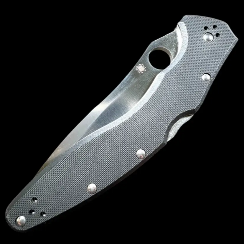 Spyderco 🕷️ ULIZE model. Slim Folding Knife with pocket clip. Great Pocket Knife For EDC (Every Day Carry). VG-10 Stainless Steel. G10 handles. “Spyderco VG-10” stamped on blade. Closed length 5-3/8”. Blade length 4-1/8”. Total length 9-5/16”. Weighs 4.8 ounces. No box, no papers. This is a discontinued knife by manufacturer. Condition: Excellent! Like new! Knife is from Rick’s personal collection, 1-owner, never worn, never carried!