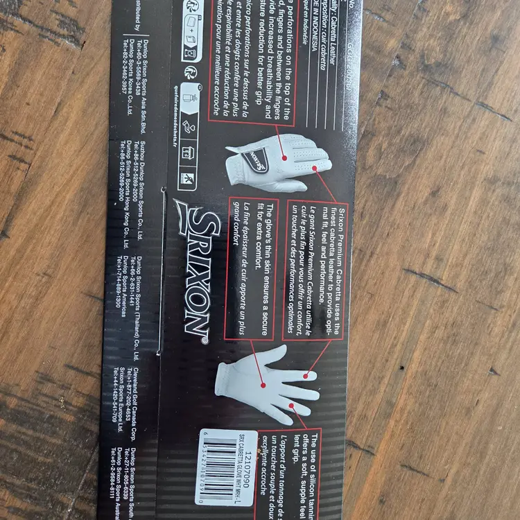 This listing is for a two pack of Srixon Premium Cabretta Leather Golf Gloves for left handed golfer..... Fits on Right Hand! Very high quality glove.