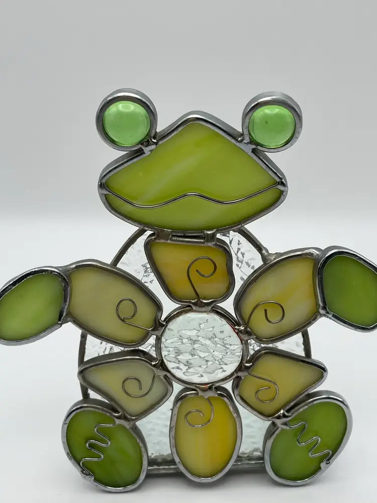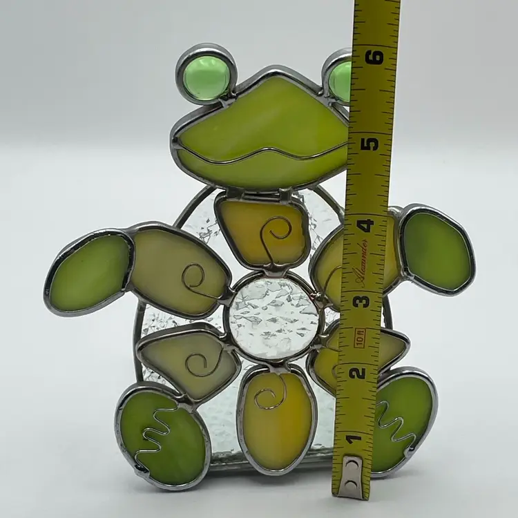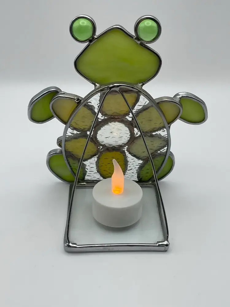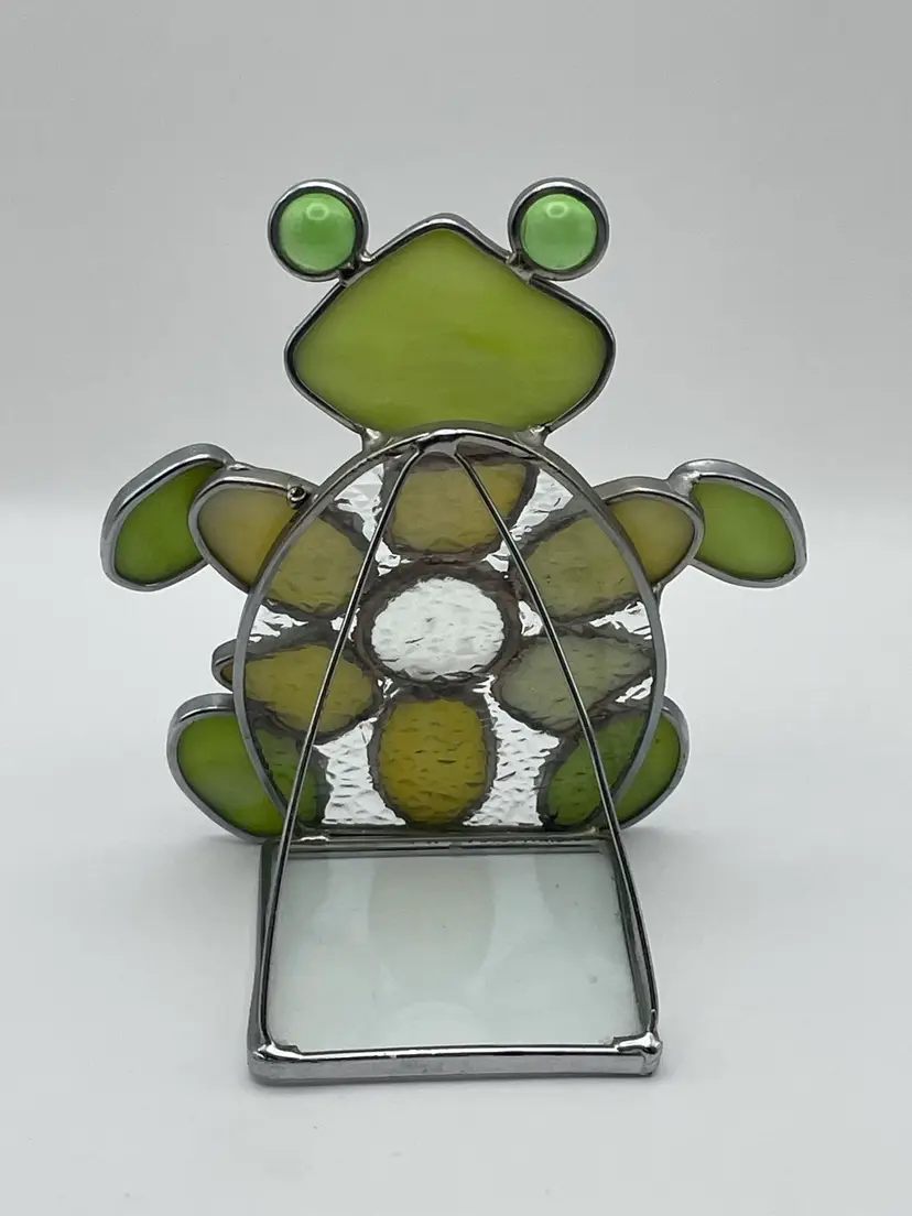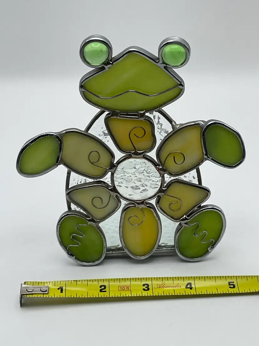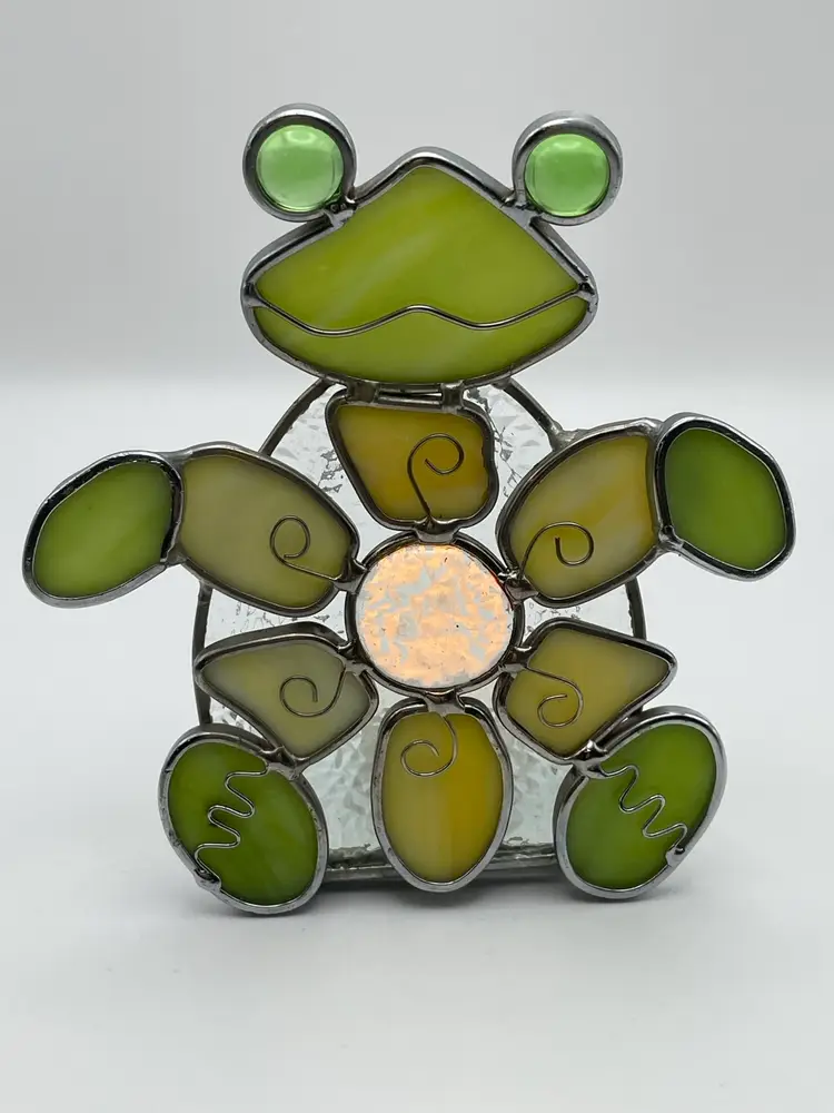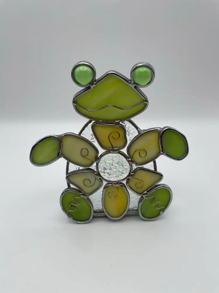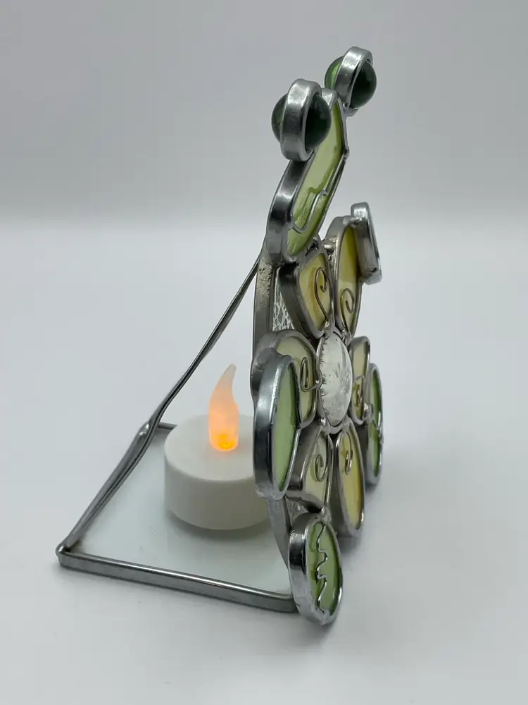 Stained Glass, Green/Gold, FROG, Tea light Holder. Kitschy and adorable! Please see pictures for measurements.
