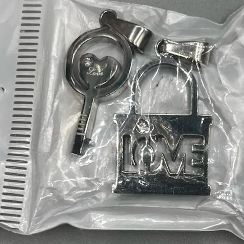 Key & lock couple necklaces with cz stainless steel set