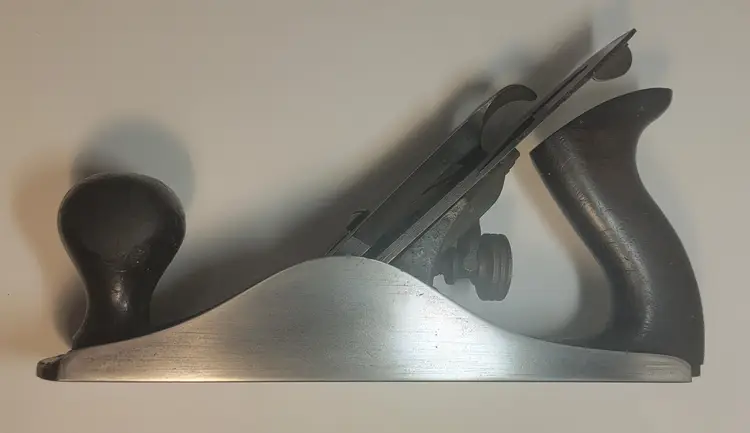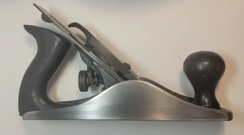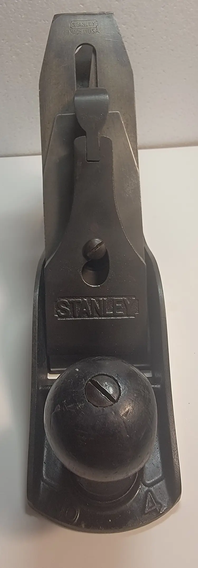 Up for sale is a really nice #4 type 17 Stanley Hand plane. These were made during WWII, no nickel plating, no brass adj. nut and a little thicker metal. This one has the steel adj. nut. I have flattened the sole and sharpened the iron. It has the smooth sole and great mouth. The tote looks like it is rosewood to me, and is crack free. The knob has no cracks, but does have a chip at the base. Alaska and Hawaii message me to work out shipping cost.